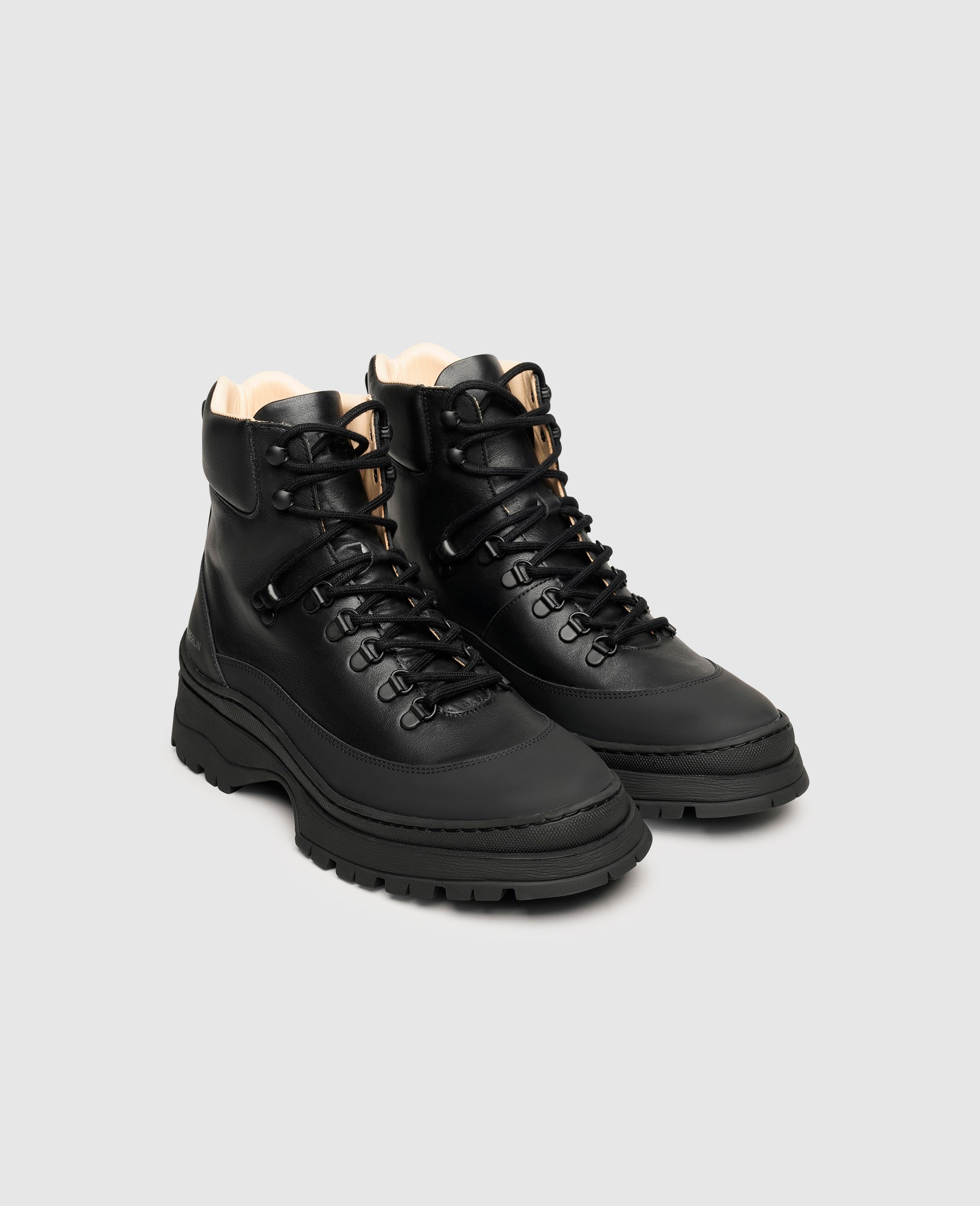 These extravagant lace-up boots in a hiking-boot style exude urban flair from the very first glance. The combination of the distinctive rubber sole with its rugged tread and the smooth leather of the upper makes this men's model a real statement piece for the fall and winter. The striking hook-and-eye lacing with its black metal detailing serves as an eye-catching statement, as does the water-repellent, rubberized leather that extends all the way to the heel. Inside, the wearer can enjoy compostable organic leather - completely free from harmful substances.