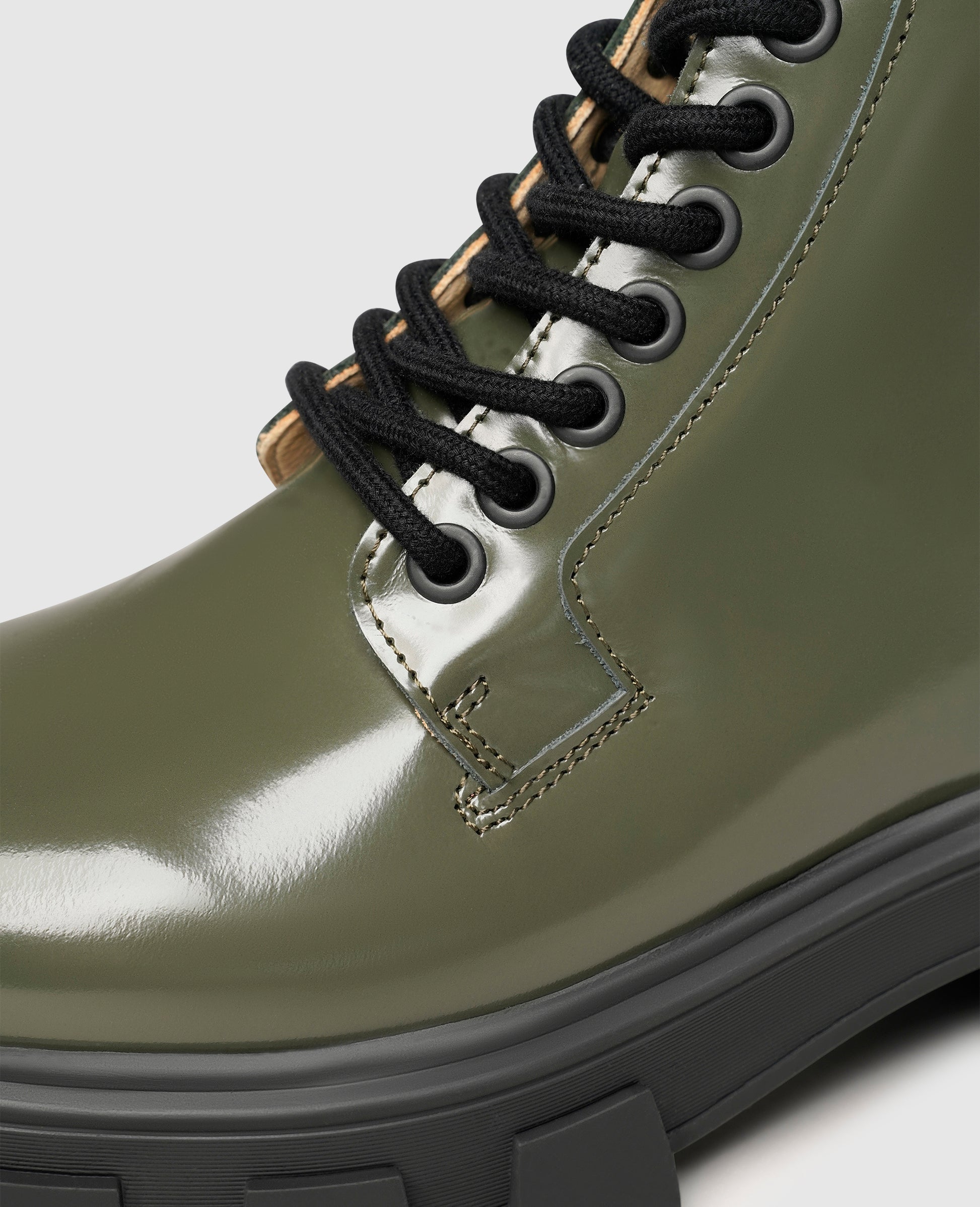 These extravagant lace-up ankle boots exude urban flair from the very first glance. The combination of the striking rubber sole with its forefoot platform, the smooth leather of the upper, and the eye-catching lacing makes this women's shoe model a real statement piece. Special detailing also awaits the wearer on the inside, as the model is lined with a compostable organic leather - completely free from harmful substances.