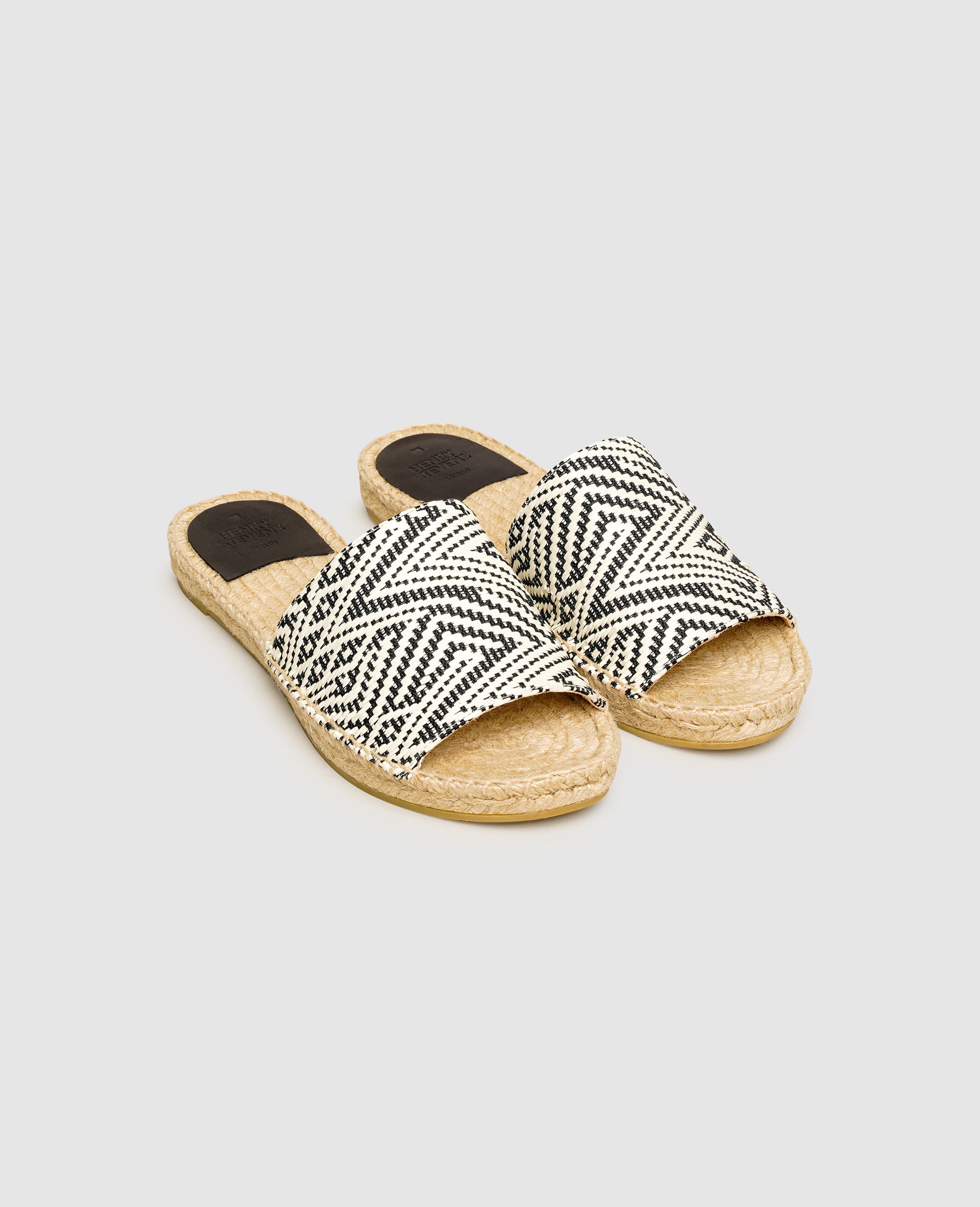 With these espadrille mules on your feet, you are sure to exude a summery flair. The wide textile strap features an on-trend pattern that is further accented by the use of a subtle glitter thread. The sole of these mules, however, is no less eye-catching, and it is, after all, the characteristic natural fibers of this model that predestine it as an accompaniment to airy summer dresses, skirts, or light pants.