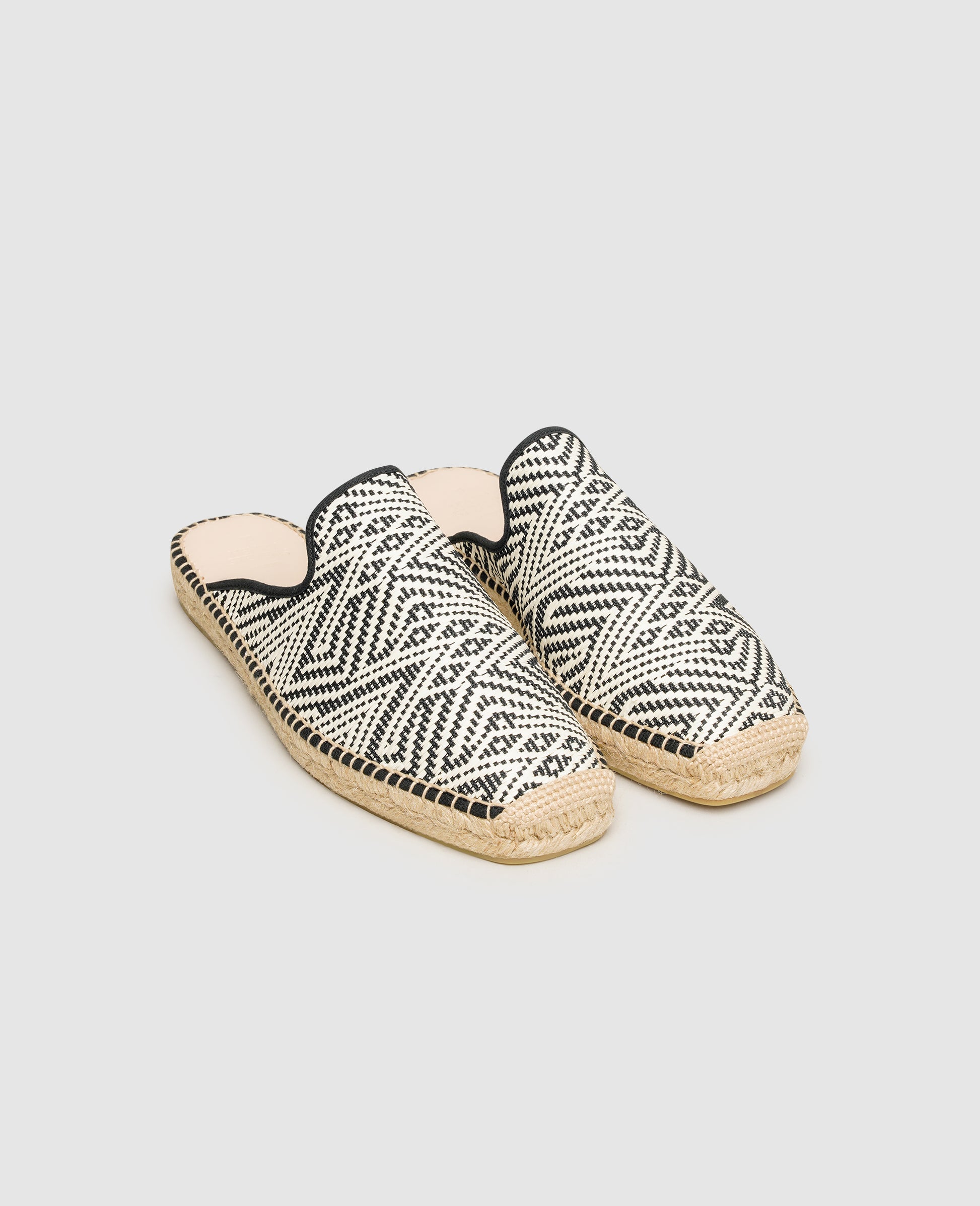 If you want to celebrate the summer with a pair of light and easy shoes, these espadrille mules are the perfect choice. The wonderful pattern on the textile upper visually creates a casual lightness, further accentuated by the characteristic natural-fiber trim on the sole. These mules are the optimal companions for warm days and guarantee to make you feel as though you are walking on air thanks to their comfortable footbed.