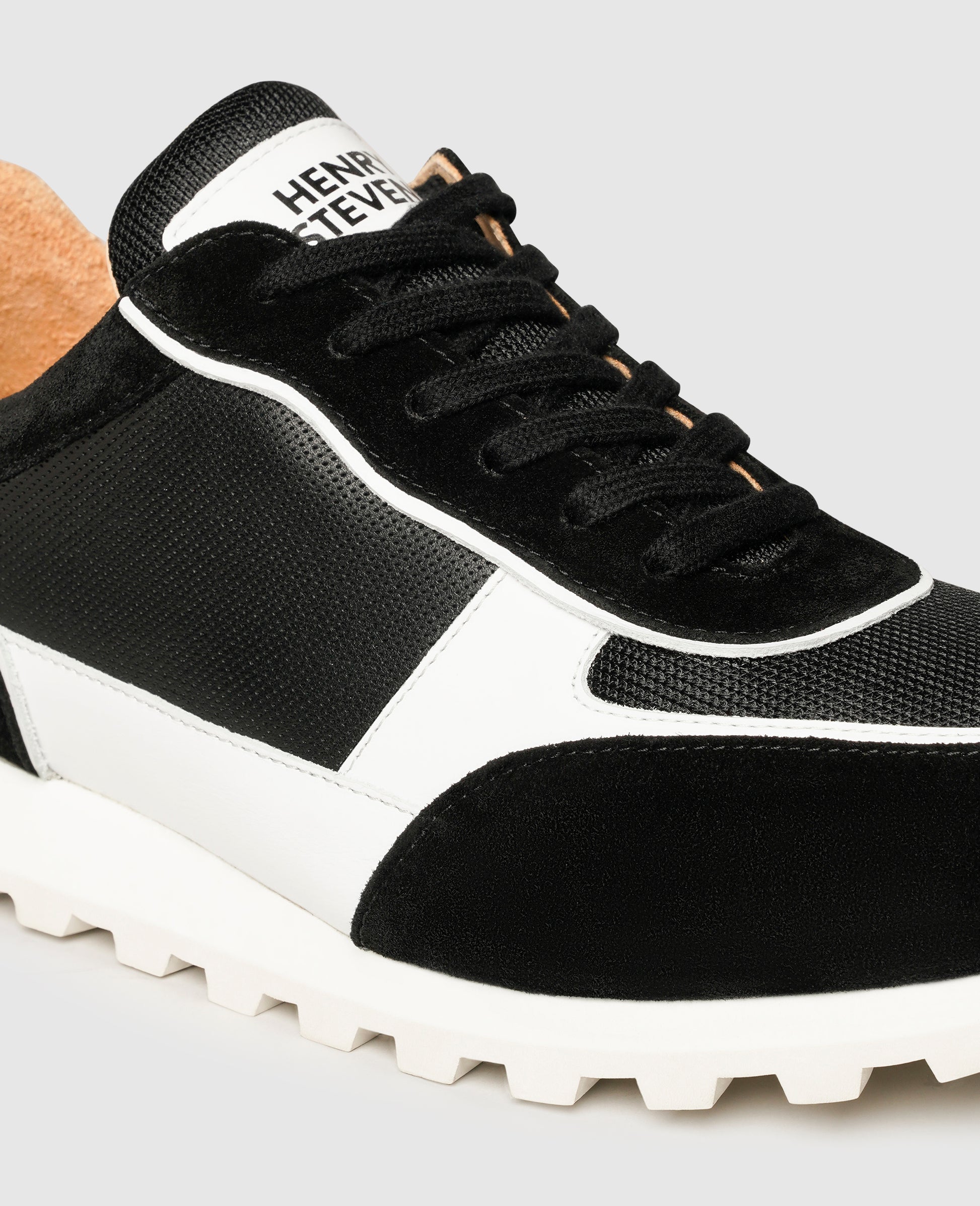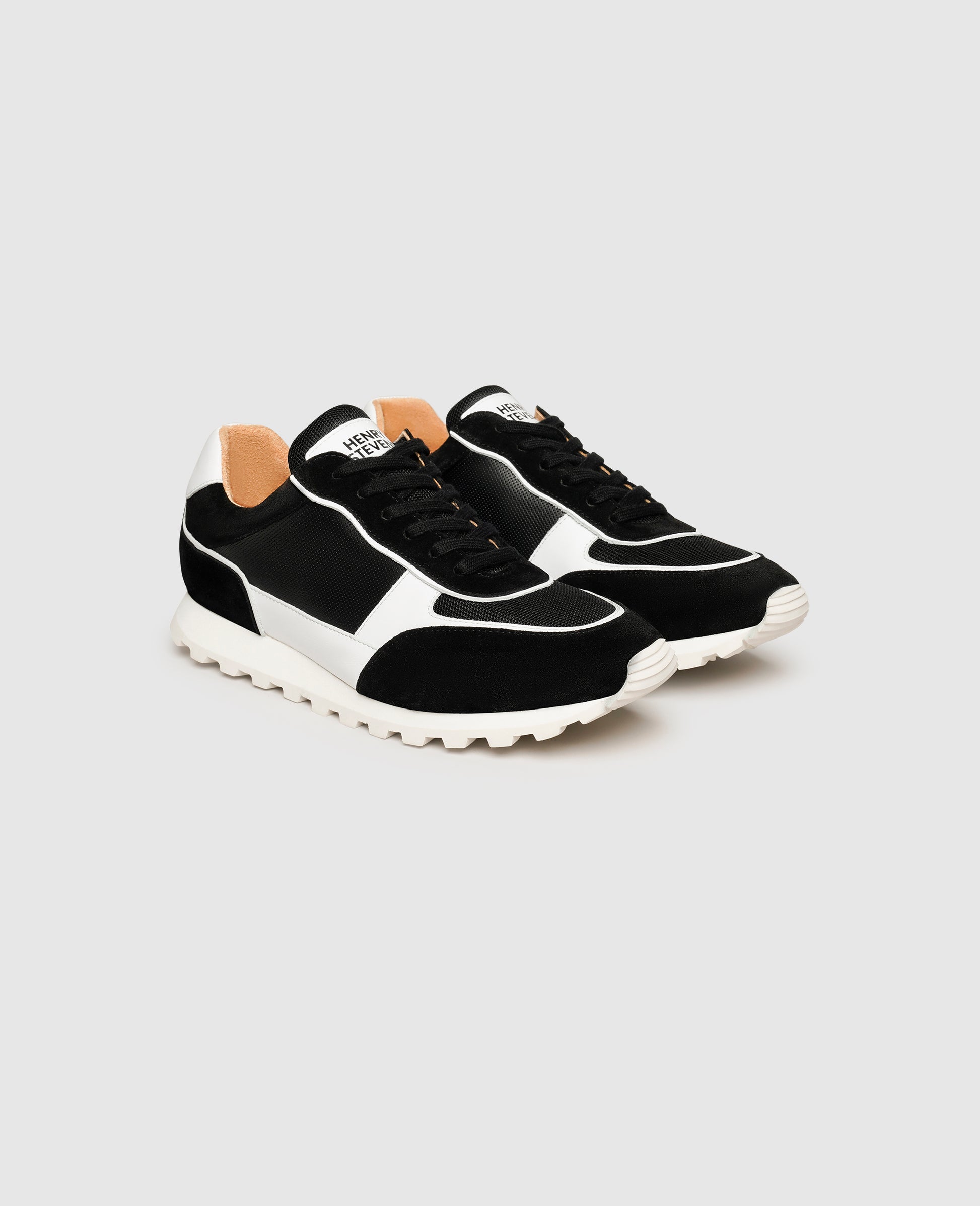 The successful interplay of comfort and design transforms this sneaker by Henry Stevens exactly into what you are looking for in a daily companion. Inside the shoe, which is made in Portugal, a fully compostable and skin-friendly organic leather lining and a comfortable exchangeable footbed with memory foam ensure an all-round comfortable walking experience. This black-and-white model for men impresses with its elegant lacing and the mix of fine calfskin and velvety calfskin velours. Equipped with a nonslip rubber outsole, tired feet are a thing of the past, even after a long and walk-intensive day. These casual lace-up shoes can be combined in many ways and are still easygoing.