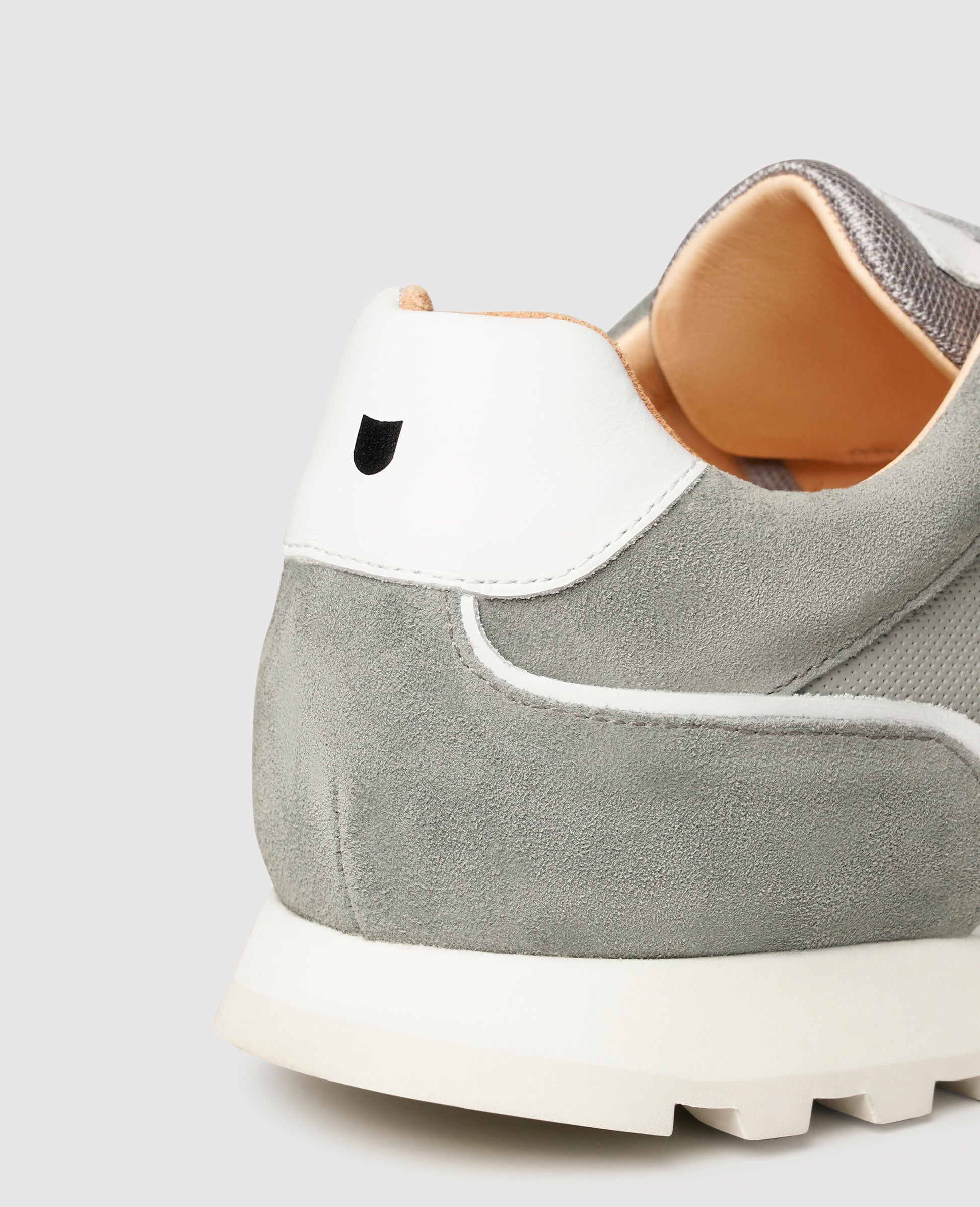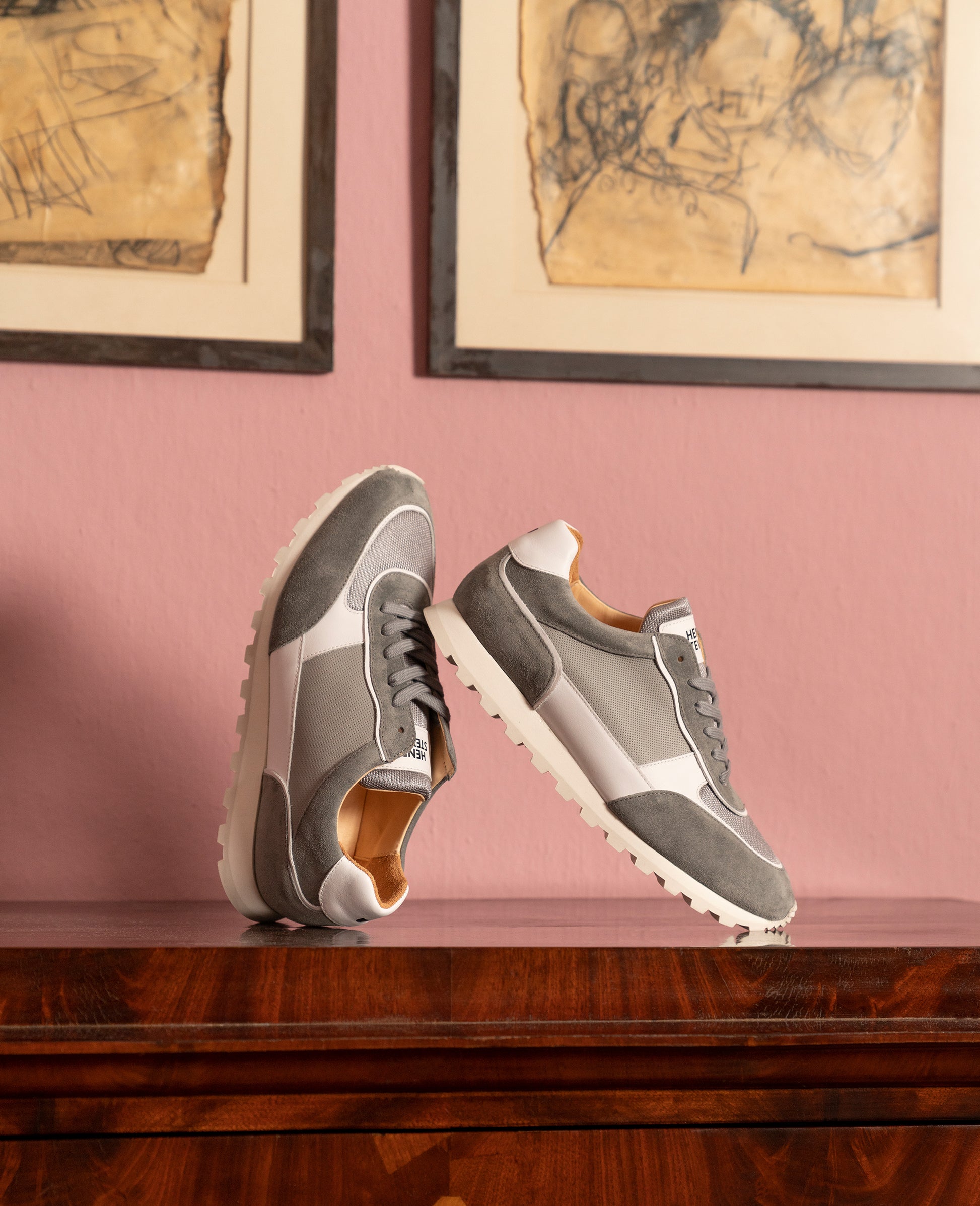 The sneakers by Henry Stevens combine comfort and a great look in a skillful way. The shoe was made in Portugal and guarantees modern lightness thanks to the fully compostable and skin-friendly organic leather lining and the comfortable exchangeable footbed with memory foam. This gray-white model for men impresses with its elegant lacing and the mix of soft calfskin and velvety calfskin velours. Equipped with a nonslip rubber outsole, tired feet are a thing of the past, even after a long and walk-intensive day. Easygoing and versatile, these casual lace-up shoes will win you over!