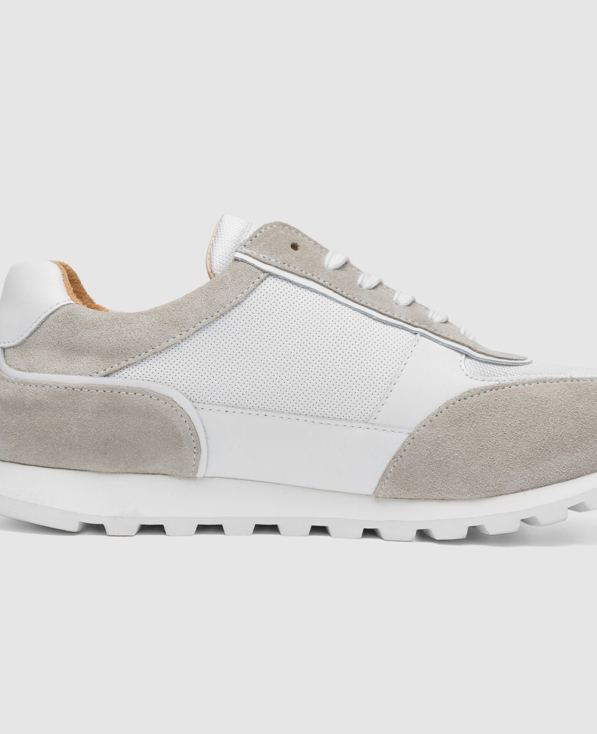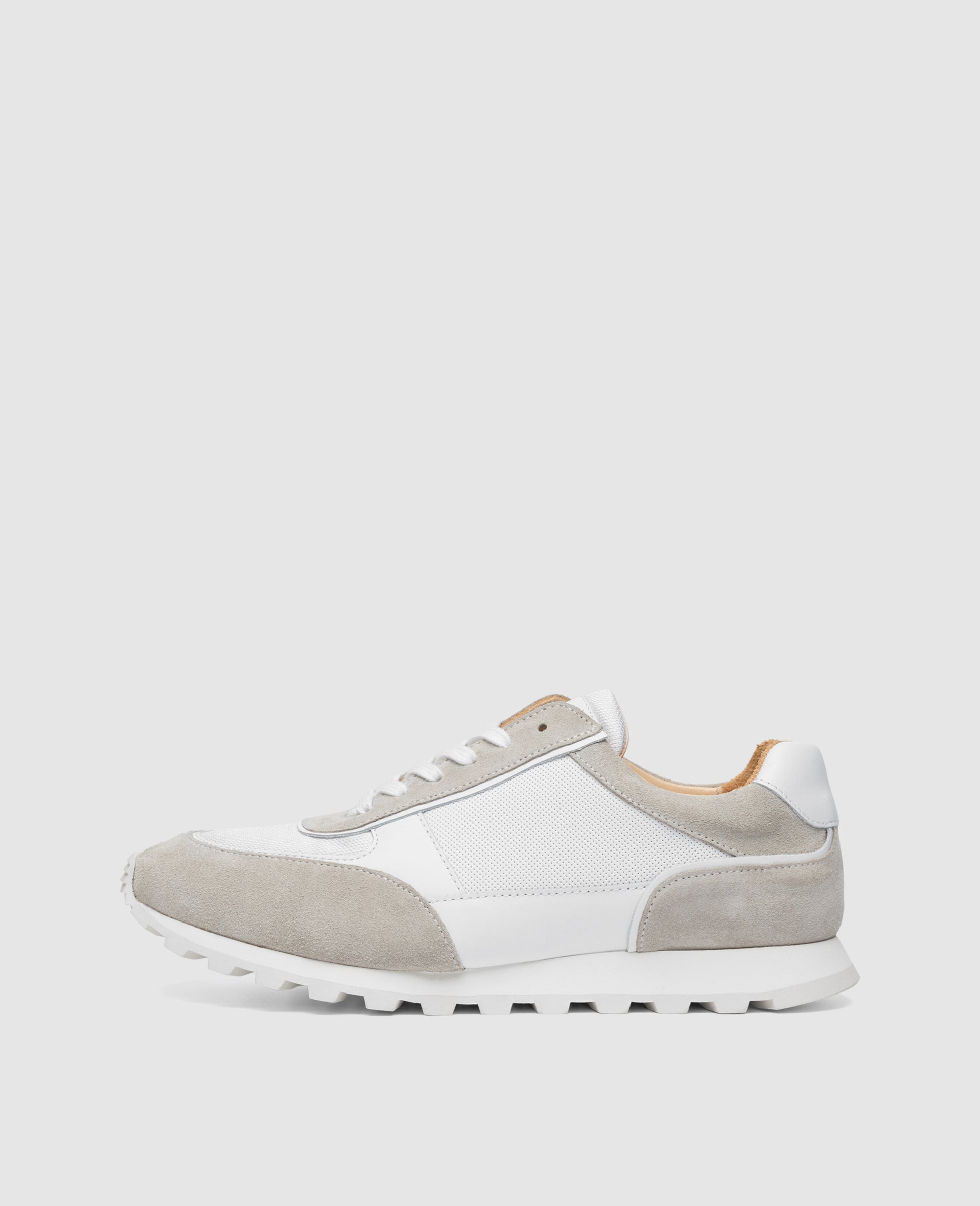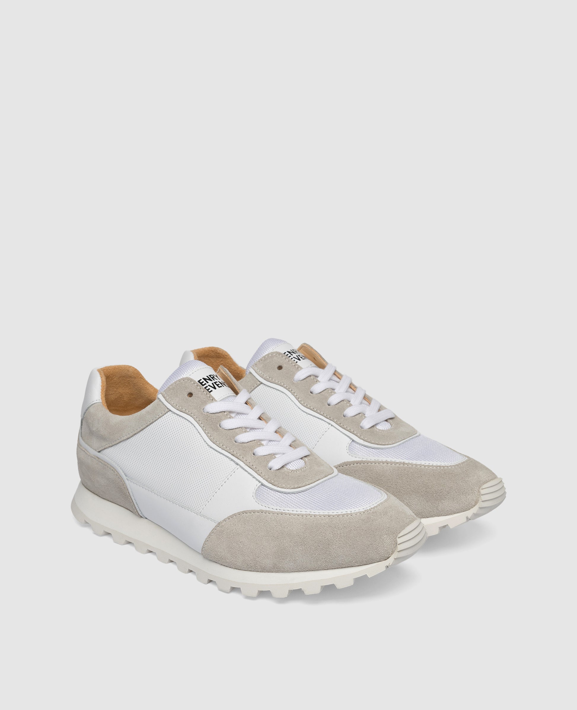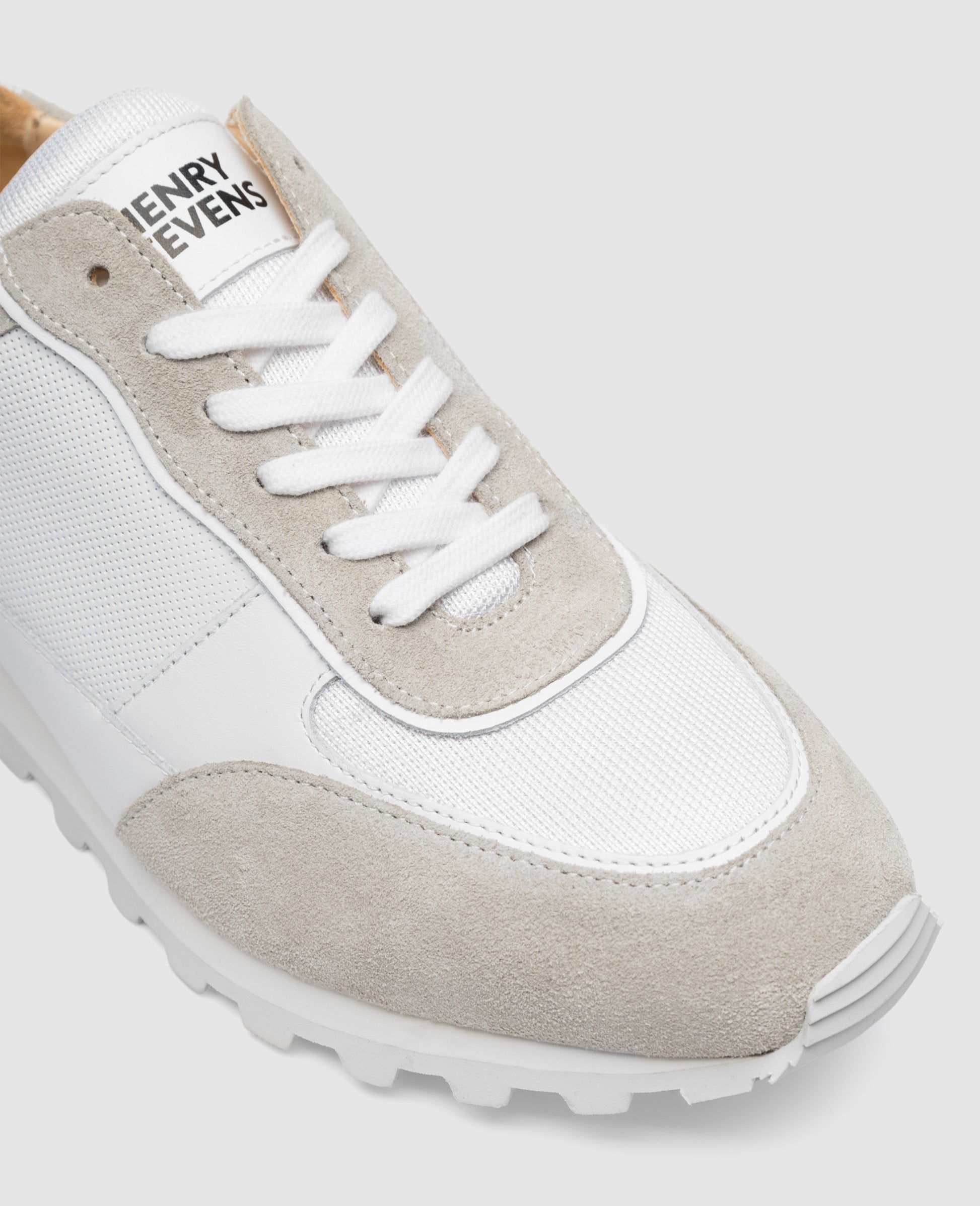 The sneakers by Henry Stevens combine comfort and a great look in a skillful way. The shoe was made in Portugal and guarantees modern lightness thanks to the fully compostable and skin-friendly organic leather lining and the comfortable exchangeable footbed with memory foam. This white model for men impresses with its elegant lacing and the mix of supple calfskin and velvety calfskin velours. The nonslip rubber outsole means you don't have to sacrifice comfort even on long walks. These lace-up shoes provide the perfect finishing touch to your casual looks.