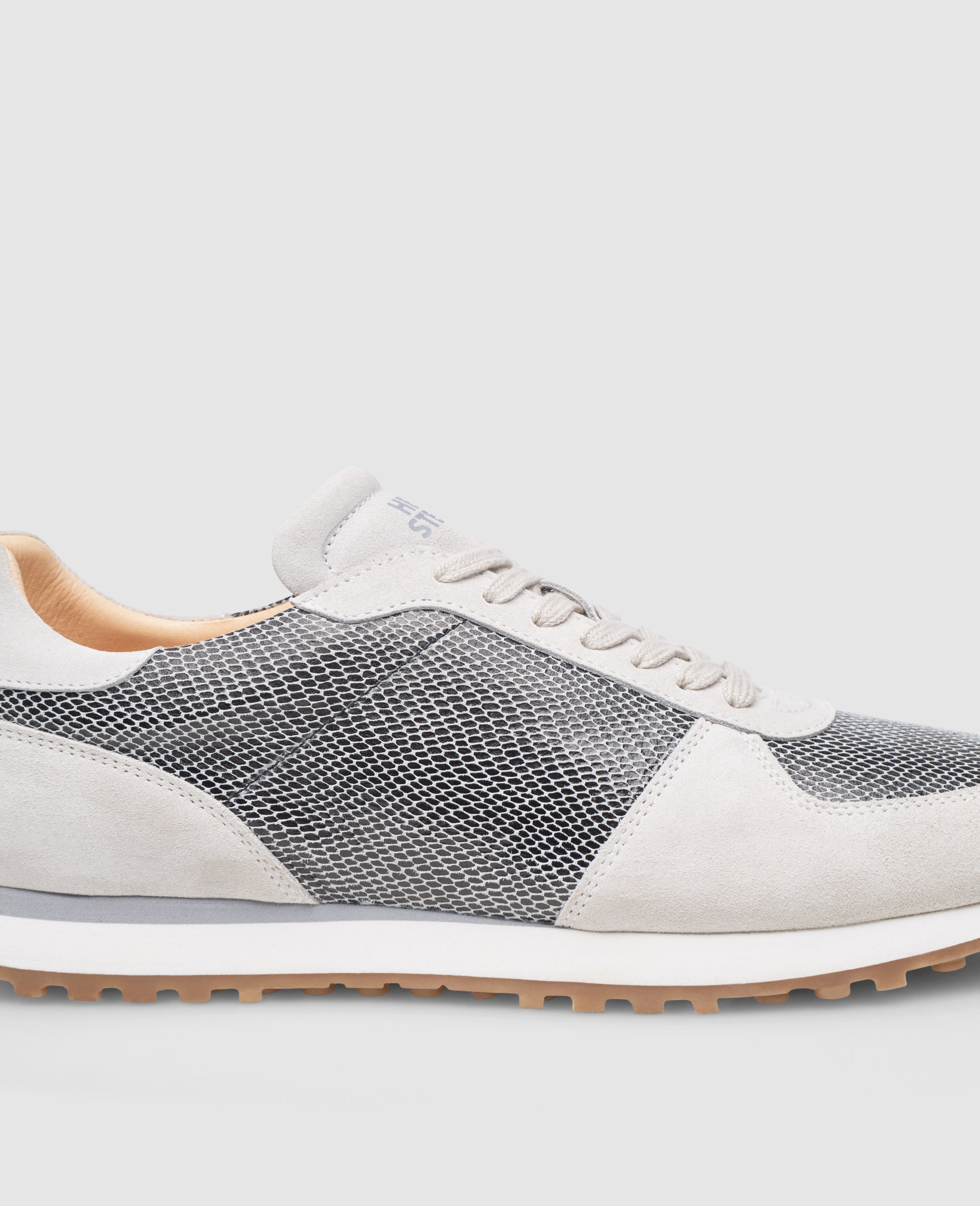 With a material mix of the finest suede and calfskin in a sophisticated snakeskin look, this new runner reflects urban lightness. Its classic sneaker sole ensures an effortless appearance. Made for anyone who wants to leave their own mark and always maintain style.