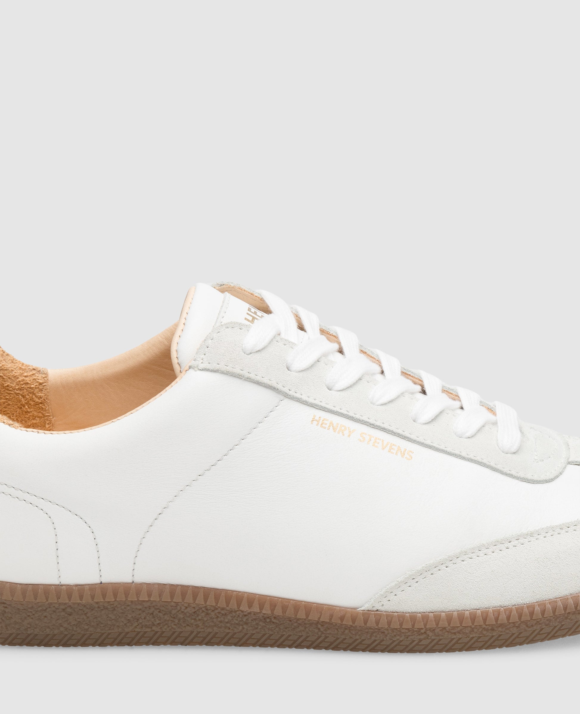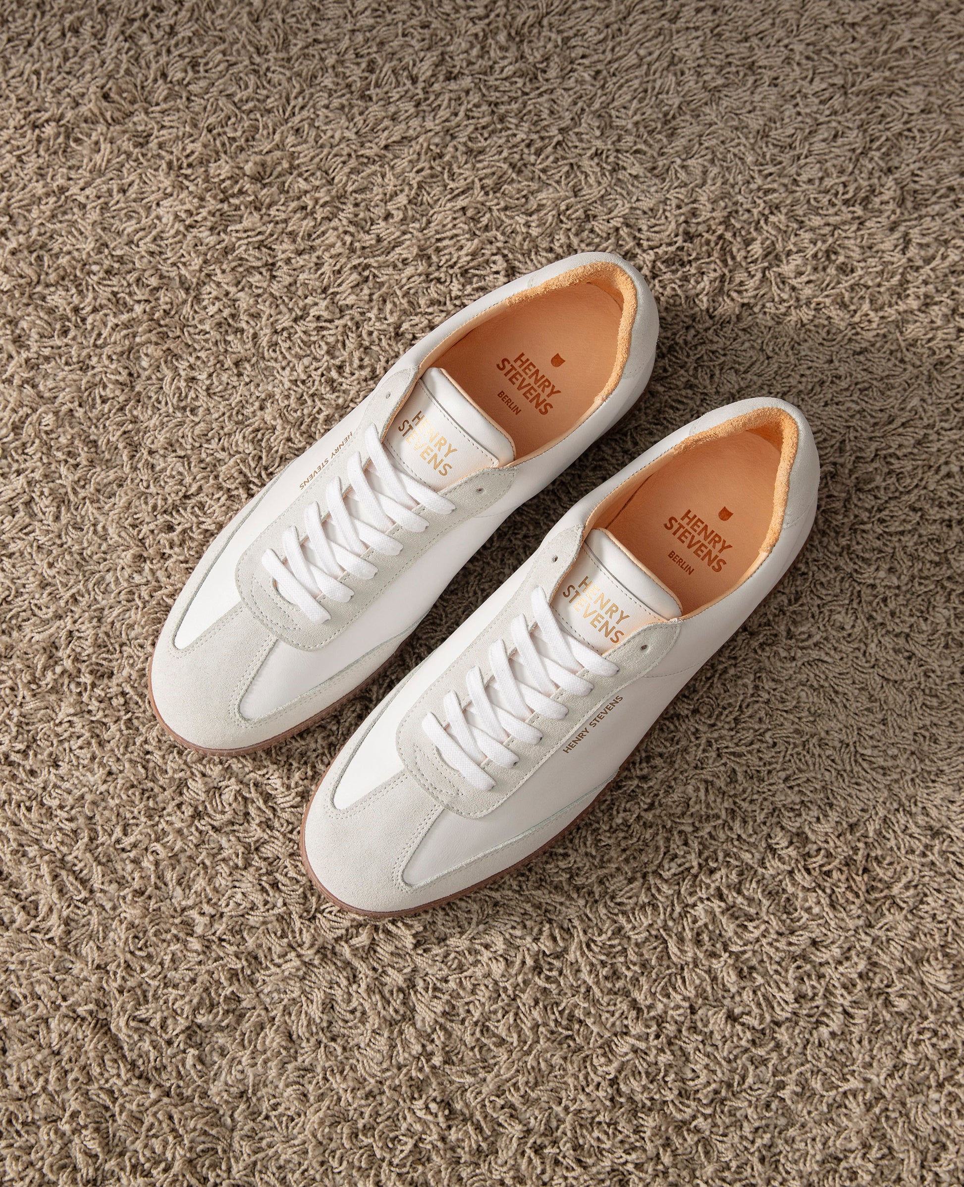 This sneaker by Henry Stevens presents a sophisticated combination of grace and opulent dynamism at first glance. The shoe in white for men impresses with its dynamic mix of soft calfskin and velvety calfskin velours and is particularly stylish thanks to the lacing. Inside, organic leather not only ensures a pleasant shoe climate, it is also particularly skin-friendly and fully compostable. Optimal comfort awaits you here thanks to the sure-footed rubber outsole and the soft interchangeable leather footbed with memory foam effect. With this lace-up shoe, made in Portugal, you have found the perfect companion for everyday and leisure wear.