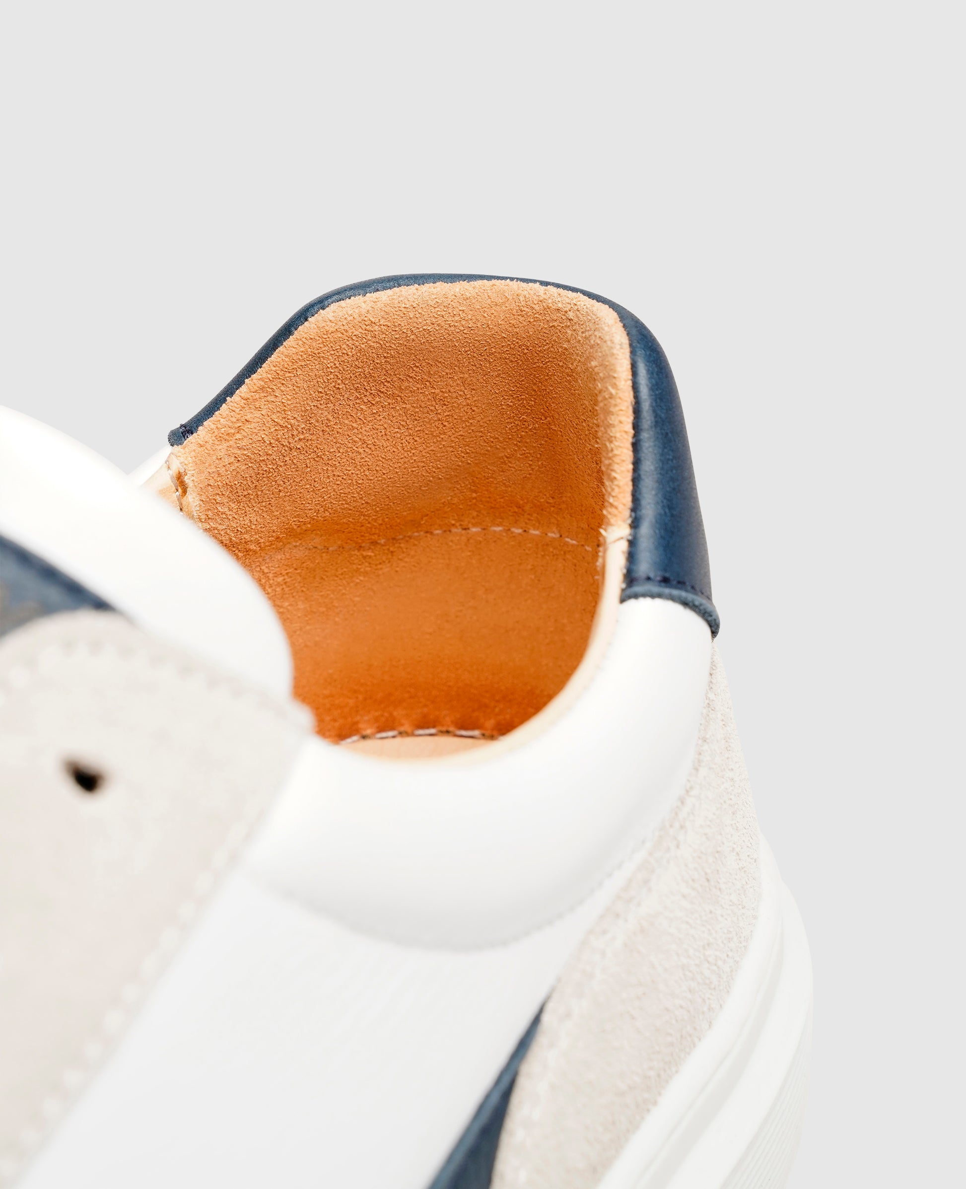 In keeping with the tradition of the ever-popular tennis shoe, this Travis trainer model from Henry Stevens combines casual sports shoe design with premium materials and meticulous European craftsmanship. The shoe's upper features a dynamic mix of supple smooth leather and velvety velour, while the practical interchangeable footbed and comfortable heel cushioning with memory foam effect ensure outstanding comfort. The inner lining made of vegetable-tanned organic leather is breathable and gentle on the skin.