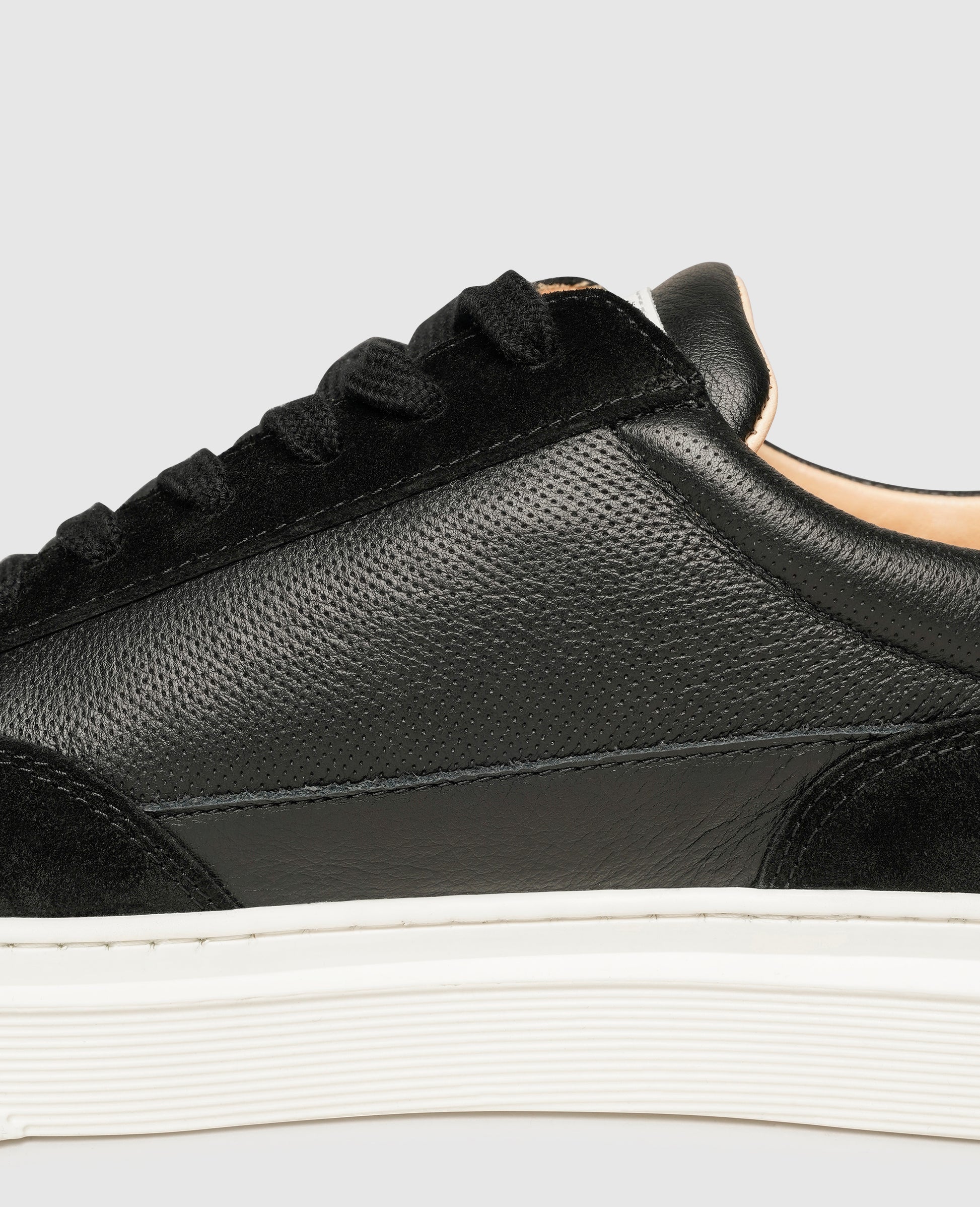 The sneakers by Henry Stevens combine comfort and a great look in a skillful way. Inside the shoe, which is made in Portugal, a fully compostable and skin-friendly organic leather lining and a comfortable exchangeable footbed with memory foam ensure an all-round comfortable walking experience. The shoe in black for men impresses with its dynamic mix of soft calfskin and velvety calfskin velours and is particularly stylish thanks to the lacing. Equipped with a sure-footed rubber outsole, tired feet are a thing of the past, even after a long and walk-intensive day. These lace-up shoes provide the perfect finishing touch to your casual looks.