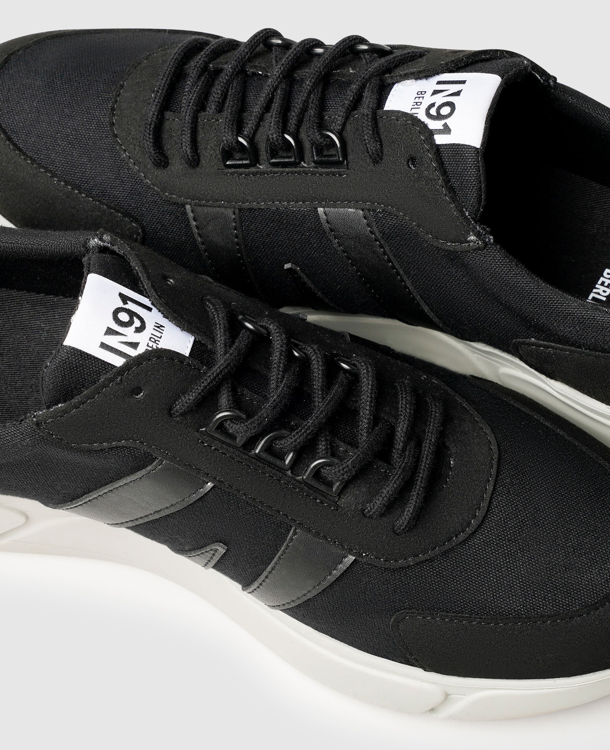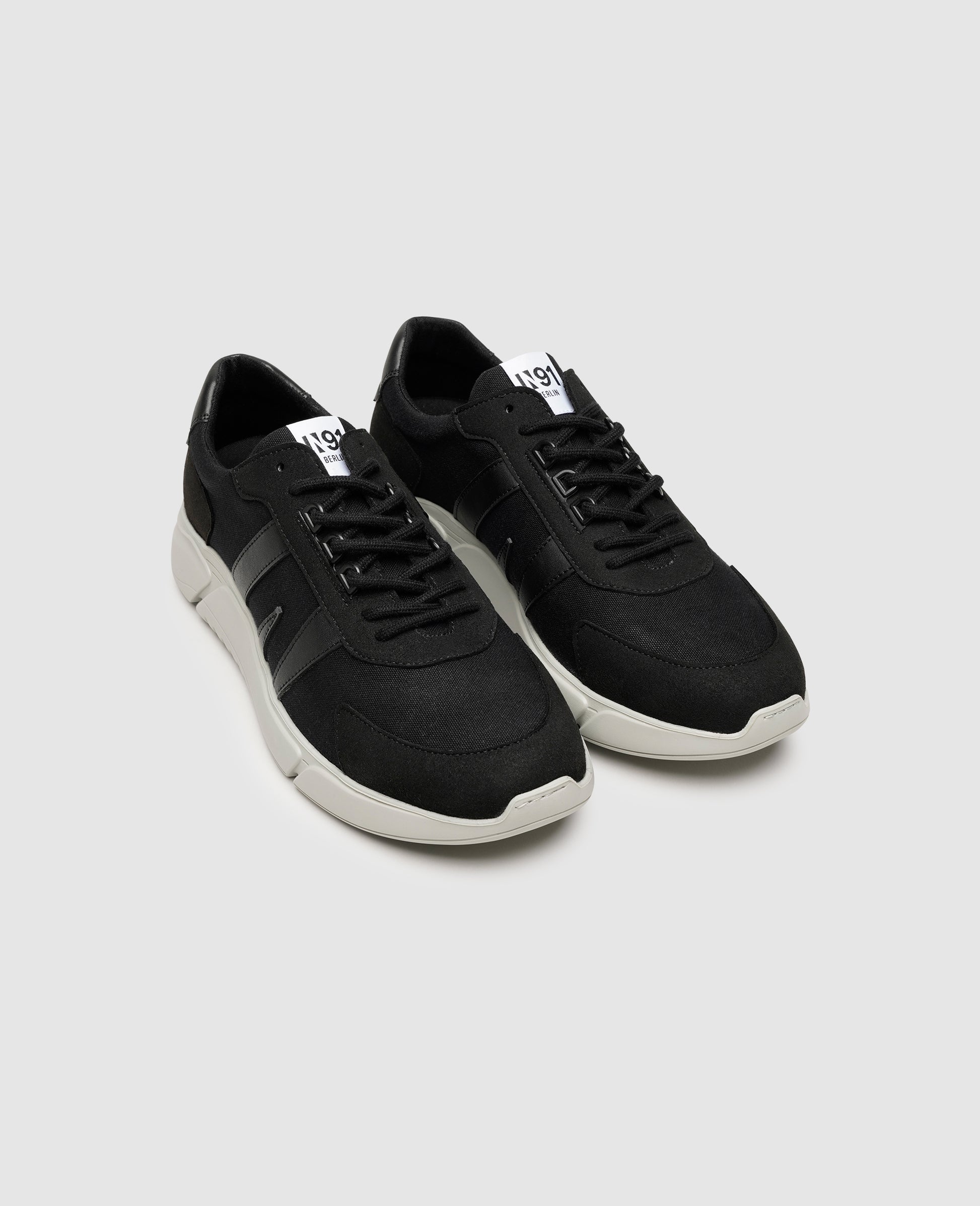 These vegan trainers for men from the N91 collection are modern, comfortable, and sustainable. The shoe's upper features a dynamic mix of rough and smooth faux leathers, as well as isolated cotton sections, while the striking outsole is made from recycled materials. The sporty design inspires in all its various color combinations and gives this vegan men's trainer a contemporary look.