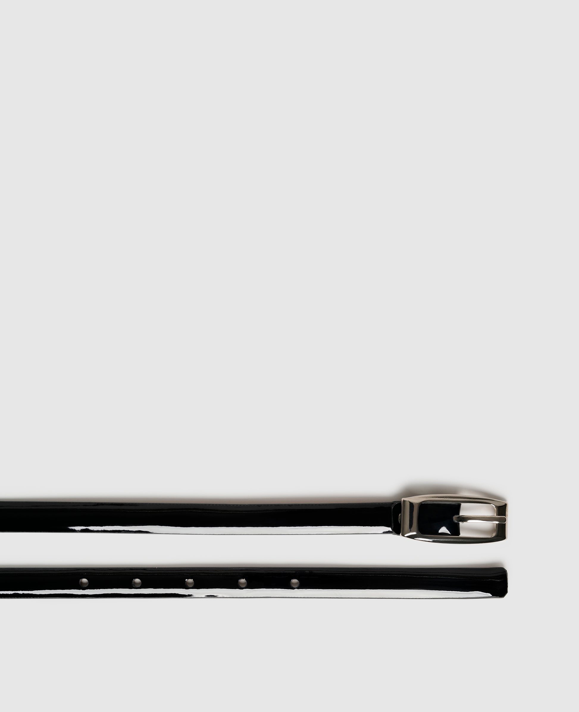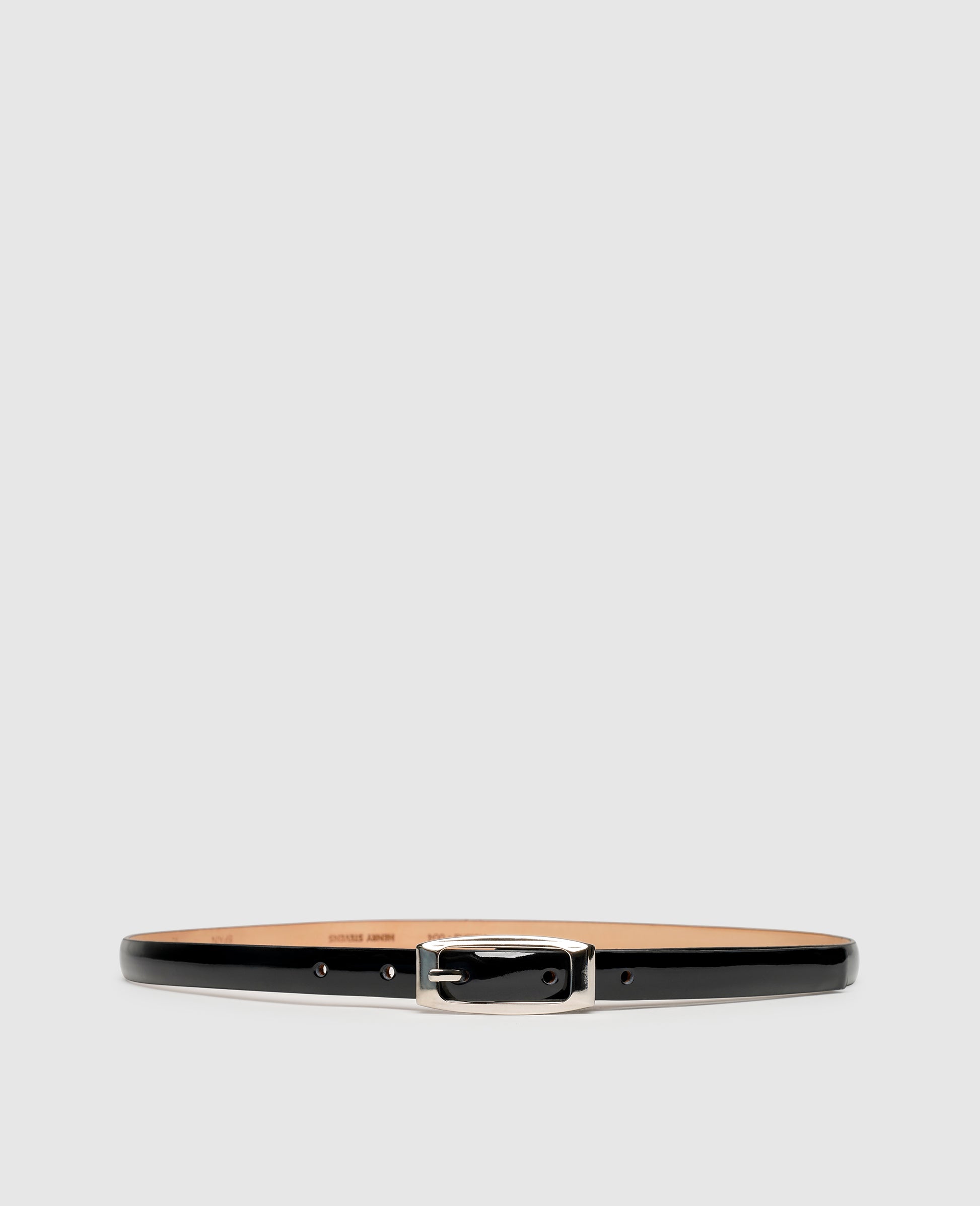 A fabulous reflective luster can be seen on the outer leather of this women's belt from Henry Stevens. This delicate belt with its width of 1.5 centimeters is the perfect choice to accompany a pair of our patent leather shoes. Inside as well as out, this belt is crafted from high-quality calfskin, with a special layer of lacquer applied to the outside to create the shimmering effect. The ensemble is rounded off with a silver pin buckle.