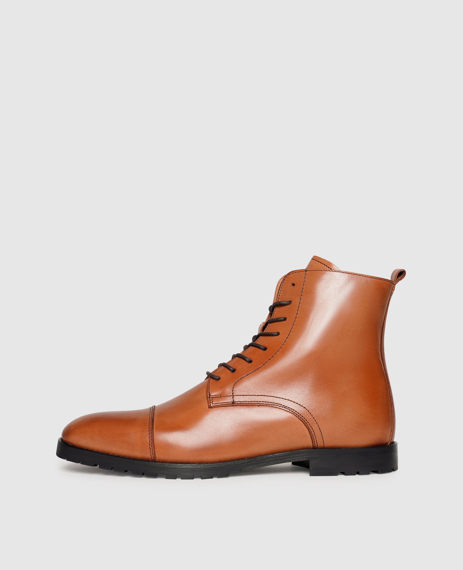 A robust look, low weight, and the best in comfort are combined in these smooth leather boots from Henry Stevens. In a popular Derby design, the smooth calfskin upper of this model is accentuated by a simple cap-toe seam. Despite their striking look, these men's boots are exceptionally lightweight and comfortable. The leather insole with its integrated memory foam effect and non-slip rubber profile sole ensure every step in these Wallace boots is taken with ease.