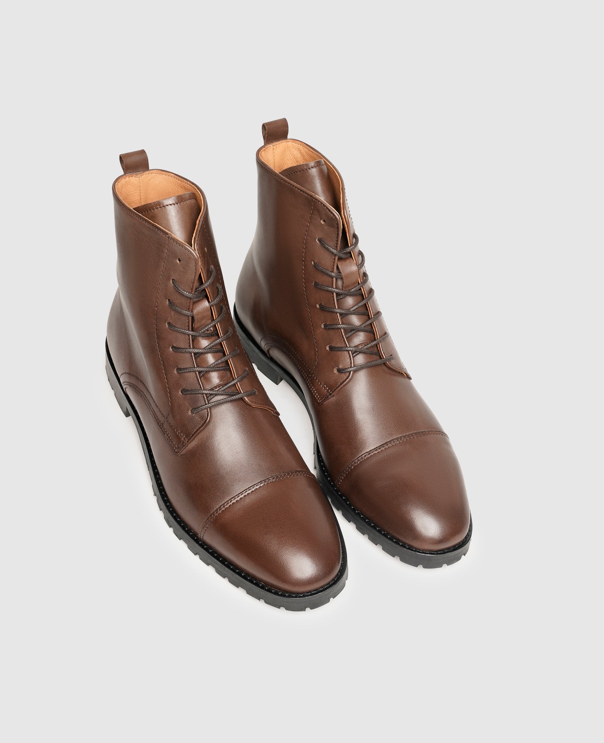 A robust look, low weight, and the best in comfort are combined in these smooth leather boots from Henry Stevens. In a popular Derby design, the smooth calfskin upper of this model is accentuated by a simple cap-toe seam. Despite their striking look, these men's boots are exceptionally lightweight and comfortable. The leather insole with its integrated memory foam effect and non-slip rubber profile sole ensure every step in these Wallace boots is taken with ease.
