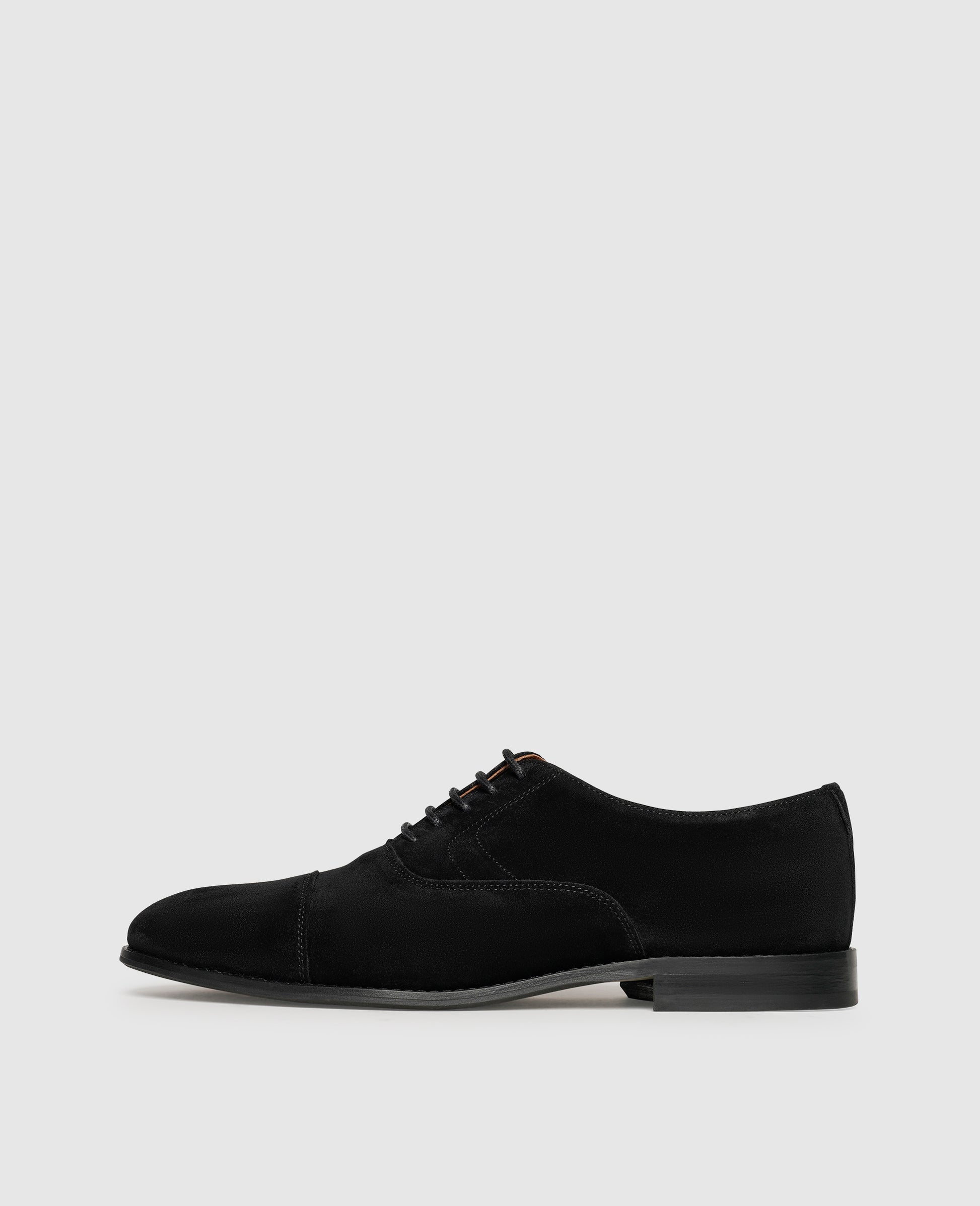 This cap-toe oxford by Henry Stevens presents a sophisticated combination of grace and opulent dynamism at first glance. The shoe was made in Portugal and guarantees modern lightness thanks to the vegetable-tanned and breathable leather lining and the comfortable footbed with memory foam. With its smooth and fine calfskin and 5-hole lacing, this black shoe for men is particularly comfortable to wear. The rubber insole gives this reliable companion a lot of flexibility and low weight. Its dynamic grace transforms this lace-up shoe into the perfect companion for confident business looks and upscale casual wardrobes.