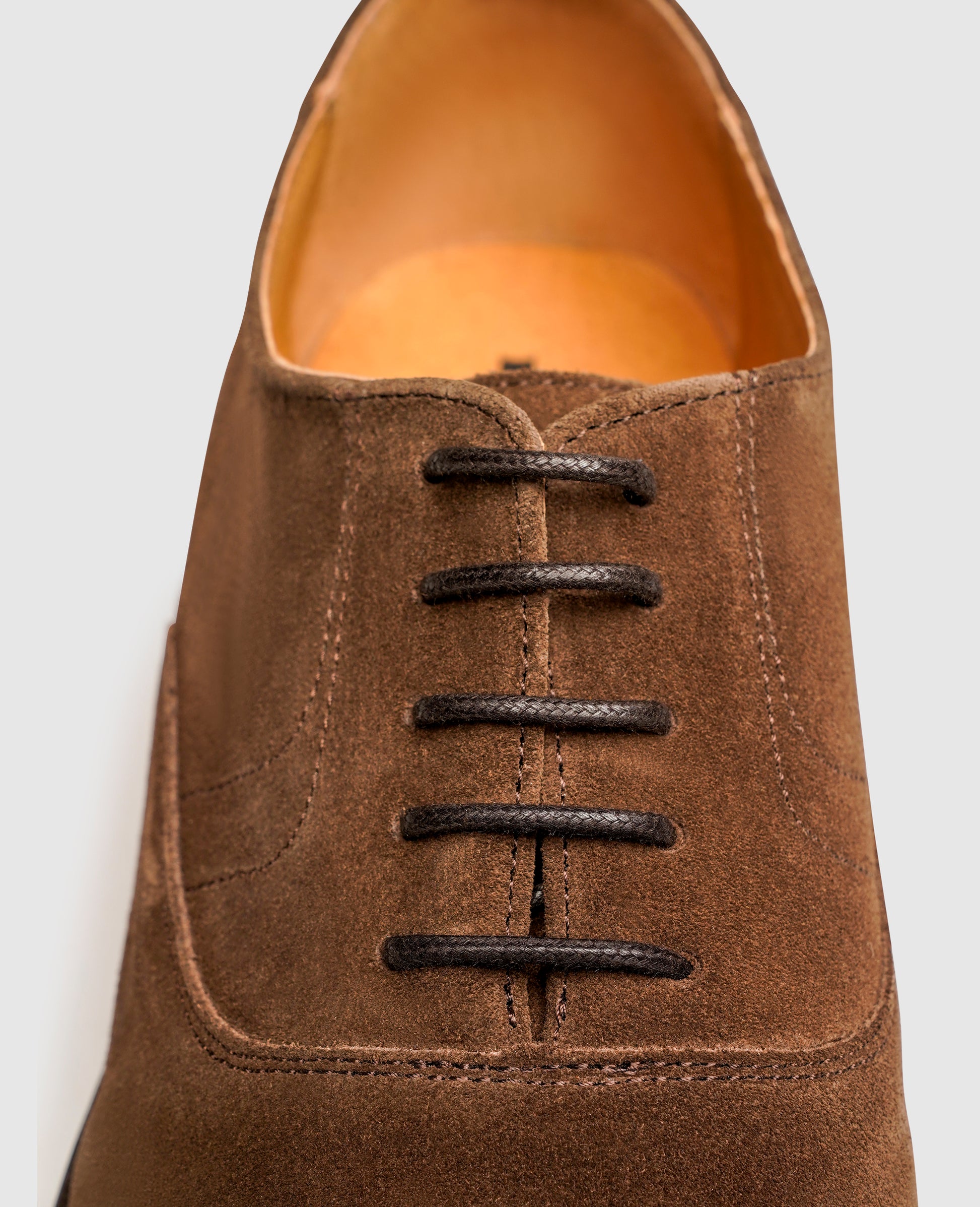 Flexible dynamism and classic charm come together in the Wallace cap-toe Oxford from Henry Stevens. This lightweight model made of fine velour leather is adorned with the namesake cap-toe seam, accentuating the model's rounded toe cap. The combined leather-rubber sole and interchangeable footbed with memory foam effect, which can be replaced in favor of your own insoles if preferred, provide the wearer with an exceptionally high level of comfort.