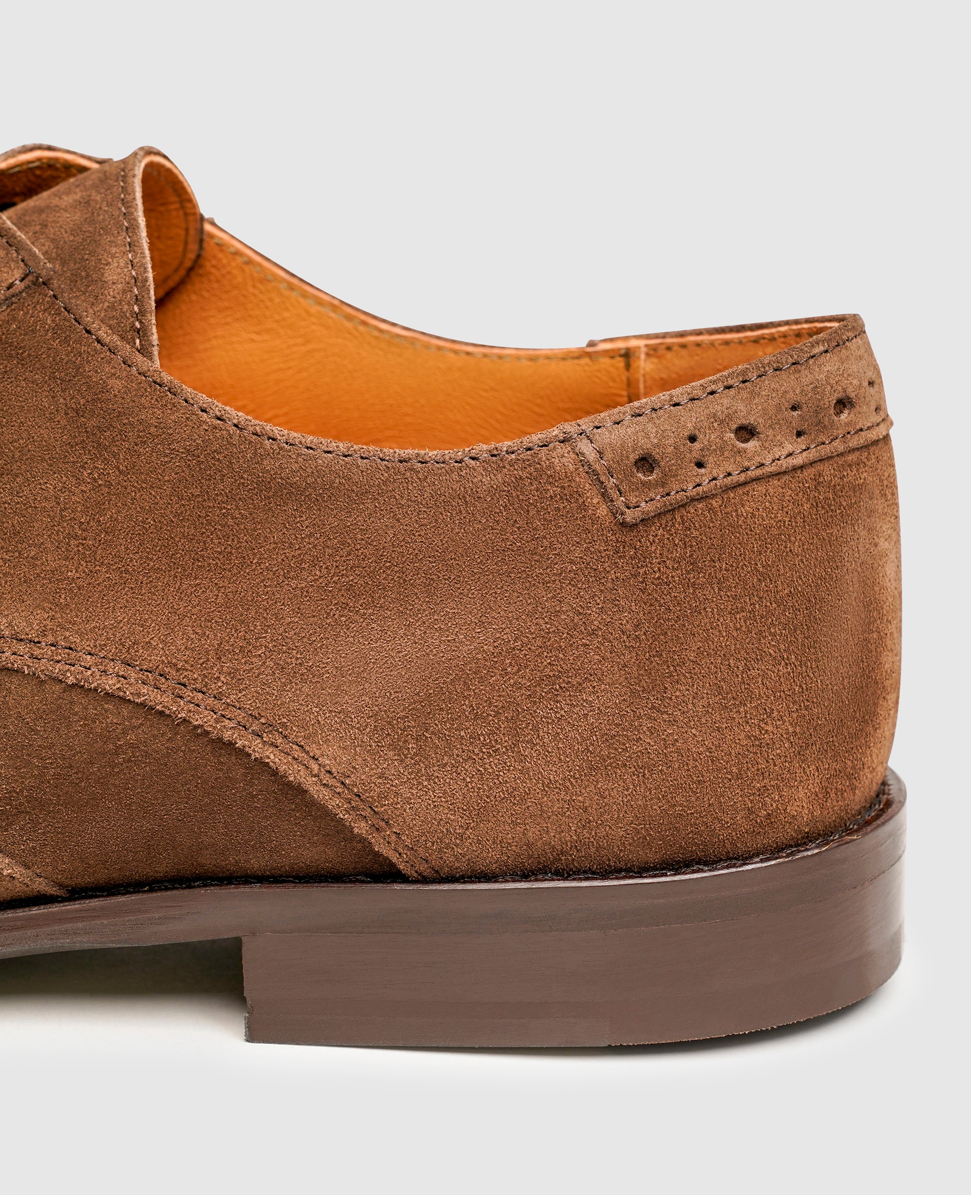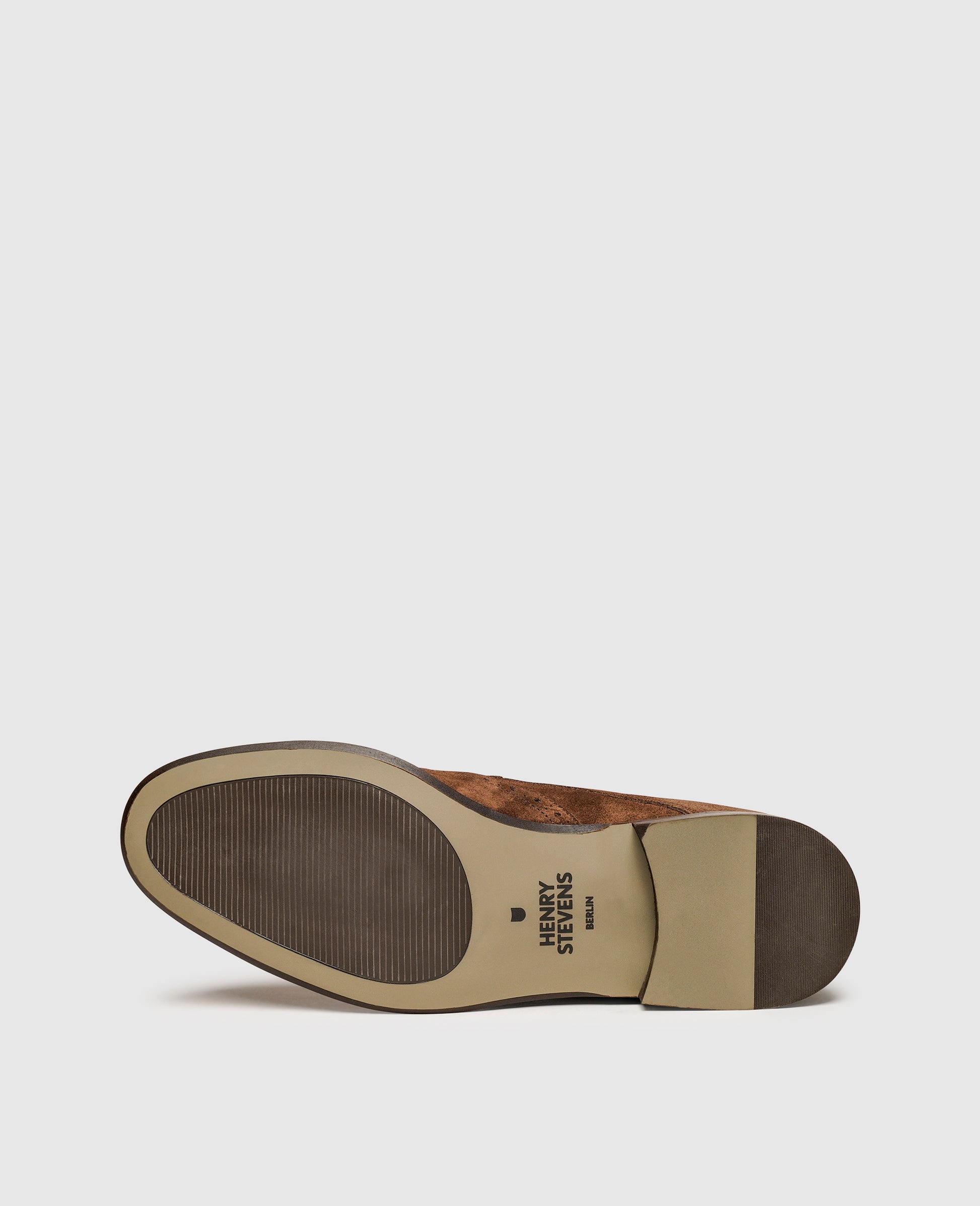 Enjoy a flexible walking experience and a dynamic look with this Wallace full-brogue Derby from Henry Stevens. The supple velour leather creates a stunning eye-catching look with its opulent pattern of perforations along the shaft, impressing with sporting chic and discreet elegance in equal measure. The rounded toe, open lacing, and combined rubber-leather sole provide for the ultimate in comfort.