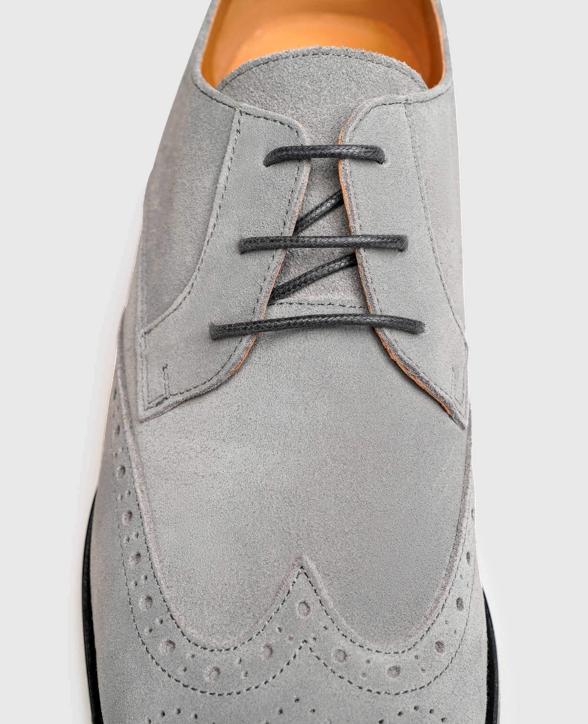 Enjoy a flexible walking experience and a dynamic look with this Wallace full-brogue Derby from Henry Stevens. The supple velour leather creates a stunning eye-catching look with its opulent pattern of perforations along the shaft, impressing with sporting chic and discreet elegance in equal measure. The rounded toe, open lacing, and combined rubber-leather sole provide for the ultimate in comfort.