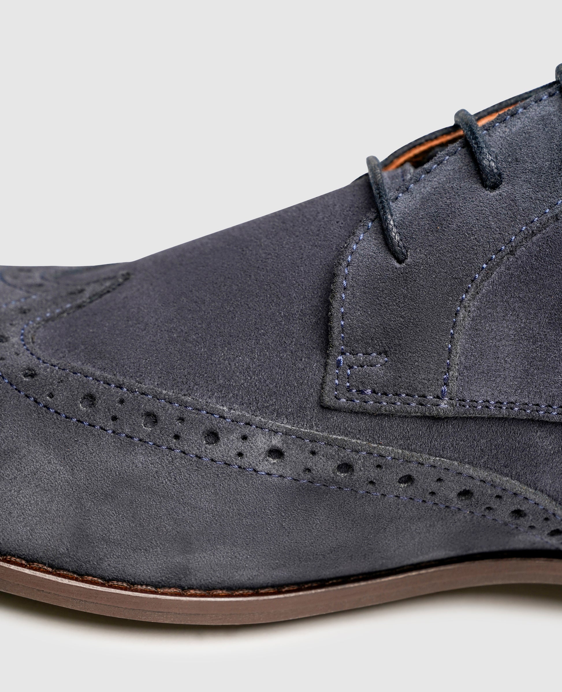Enjoy a flexible walking experience and a dynamic look with this Wallace full-brogue Derby from Henry Stevens. The supple velour leather creates a stunning eye-catching look with its opulent pattern of perforations along the shaft, impressing with sporting chic and discreet elegance in equal measure. The rounded toe, open lacing, and combined rubber-leather sole provide for the ultimate in comfort.