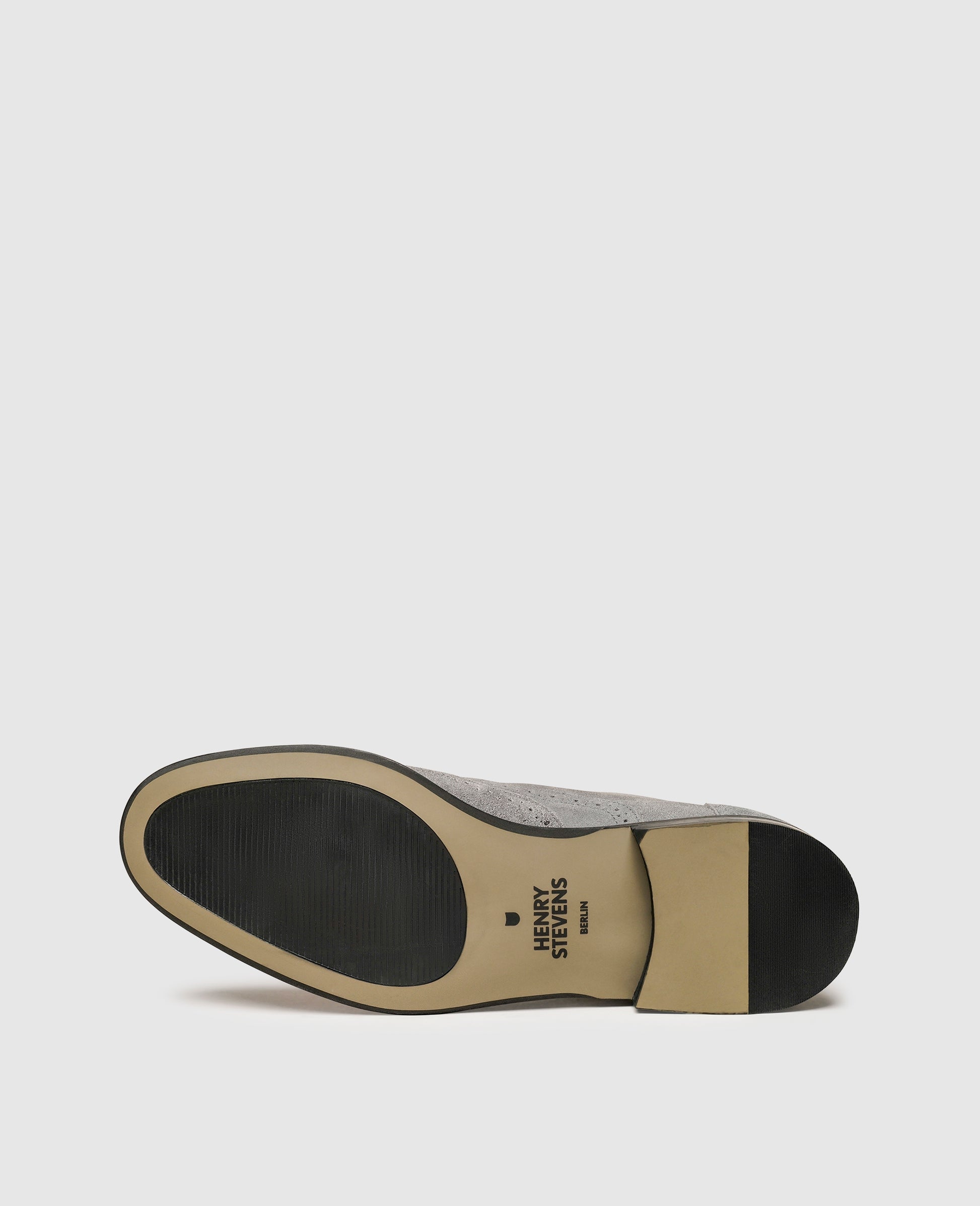 A combination of delicate charm and opulent dynamism, this Wallace full-brogue Oxford from Henry Stevens catches the eye immediately. The model's lightweight shoe construction is further accentuated by the supple, embellished velour of the upper. The forefoot of this classic model offers enhanced flexibility thanks to its combined leather-rubber sole, while the memory foam-effect footbed adds additional comfort.