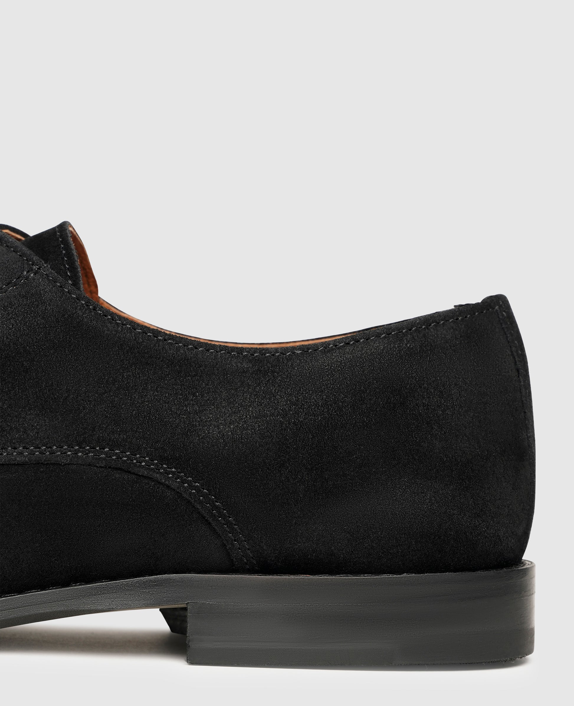 A symbiosis of lightweight comfort and classic elegance is presented by this plain derby by Henry Stevens. Inside the shoe, which is made in Portugal, a vegetable-tanned and breathable leather lining and a comfortable footbed with memory foam ensure an all-round comfortable walking experience. With its smooth and soft calfskin and 5-hole lacing, this black shoe for men is particularly comfortable to wear. The perfect combination of rubber and leather allows the outsole not only a lot of flexibility, but also a very low weight. Its dynamic grace transforms this popular lace-up shoe into a versatile companion for confident business looks and upscale casual wardrobes.