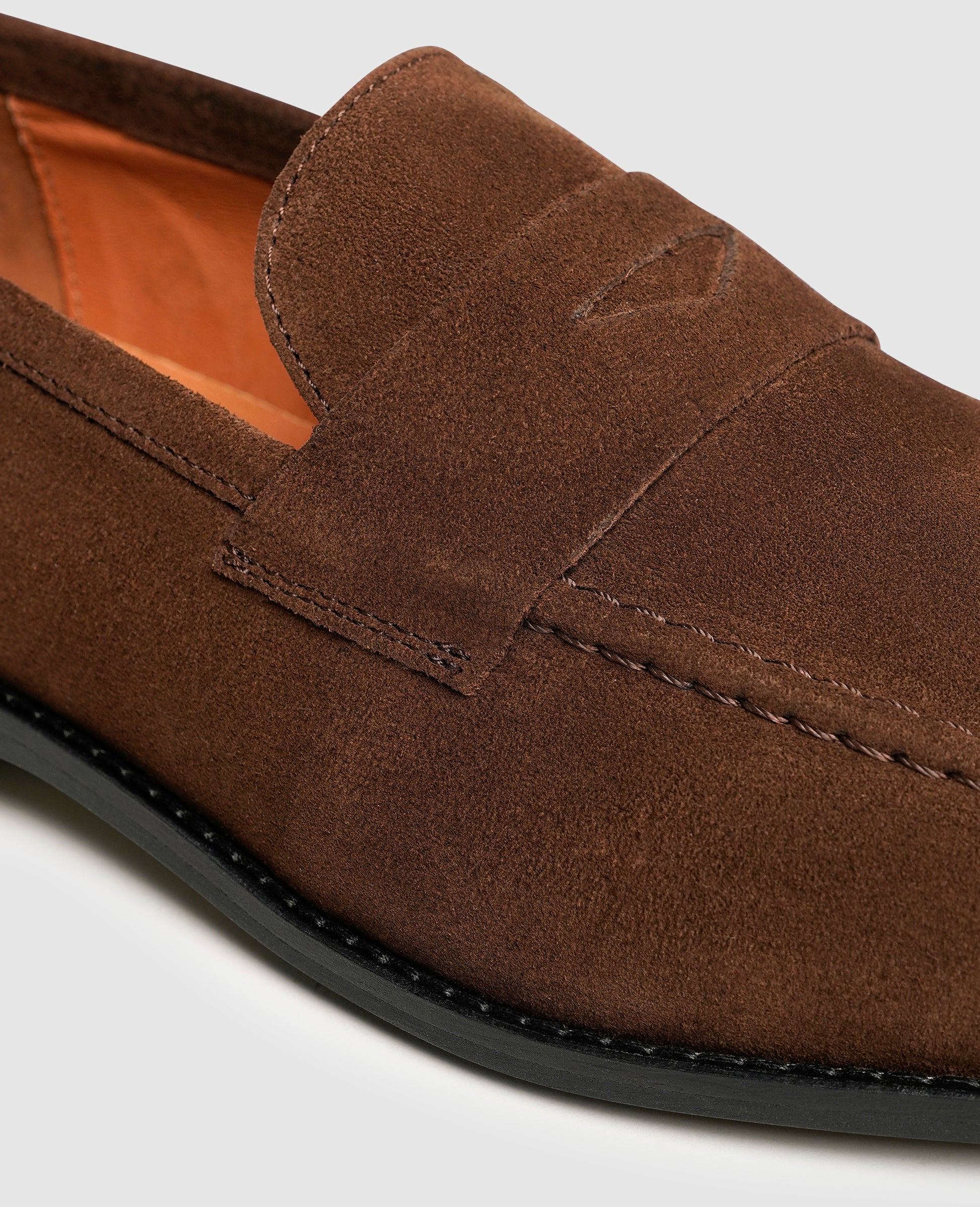 Here you will find the perfect symbiosis of lightweight comfort and classic elegance - penny loafers by Henry Stevens. Together with the vegetable-tanned and breathable leather lining and a comfortable footbed with memory foam, the shoe made in Portugal guarantees modern lightness. The brown shoe for men will delight you, especially with its grainy and velvety calfskin velours. Thanks to the durable leather outsole with a rubber insert, you don't need to sacrifice comfort even on long walks. The chic lace-up shoe is the perfect companion for business looks and the sophisticated casual wardrobe.
