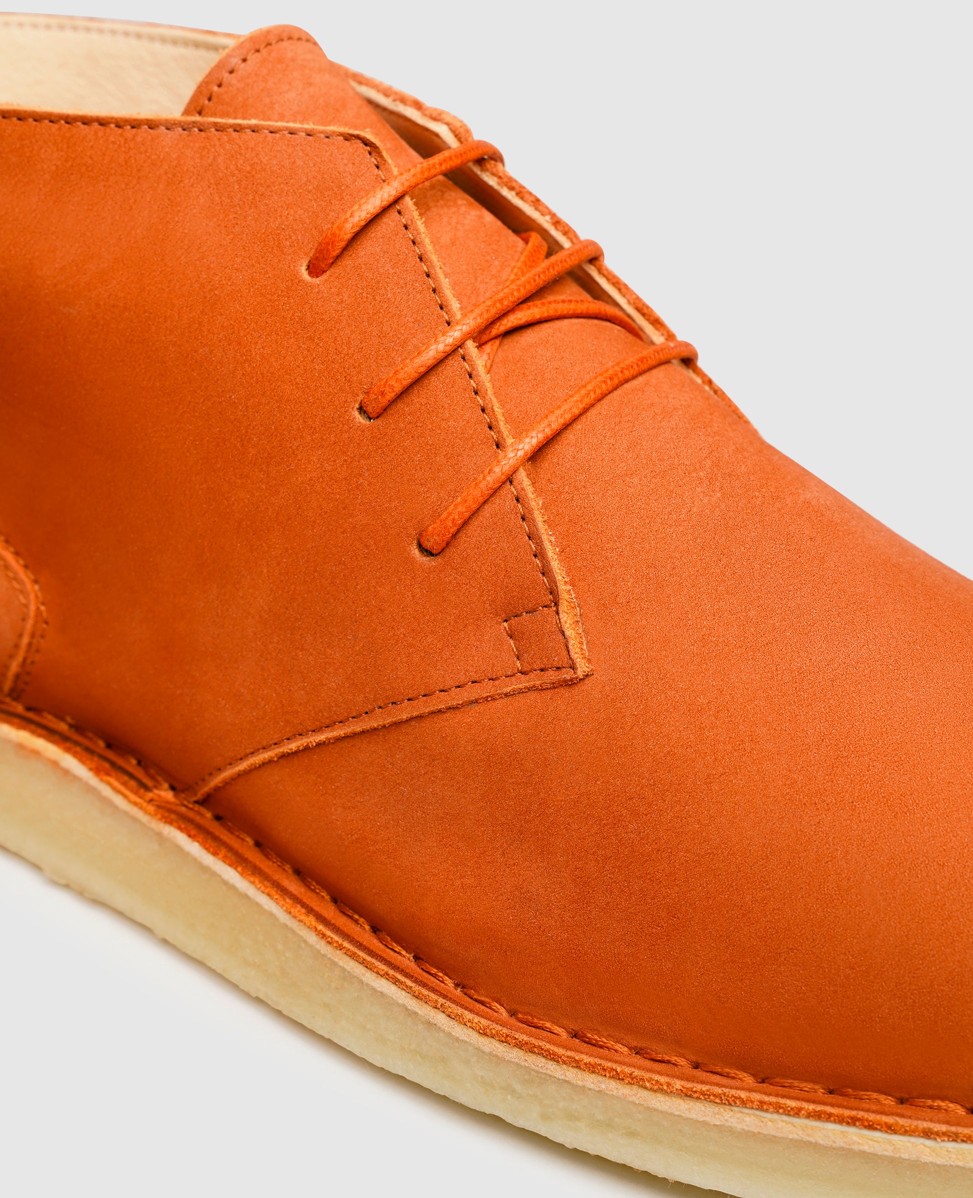 This flexible stitchdown George Boot from the Henry Stevens collection surprises with its bright crepe sole made from natural rubber. The modern look of this men's ankle boot with its characteristic three-hole lacing is enhanced by a velvety nubuck leather upper. The vegetable-tanned and skin-friendly lining made of organic leather, and practical interchangeable footbed with memory foam effect, create both a pleasant feel within the shoe as well as exceptional levels of comfort.