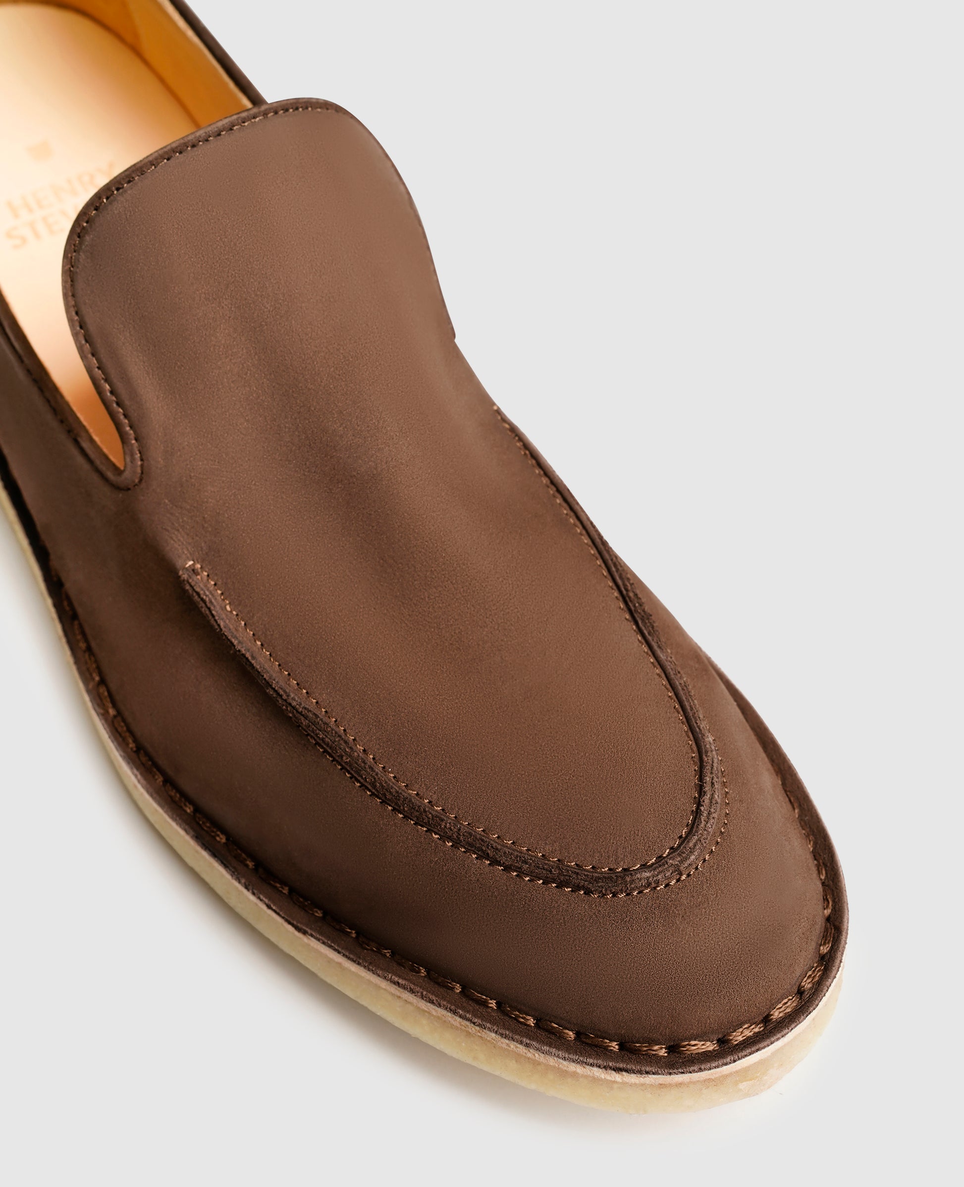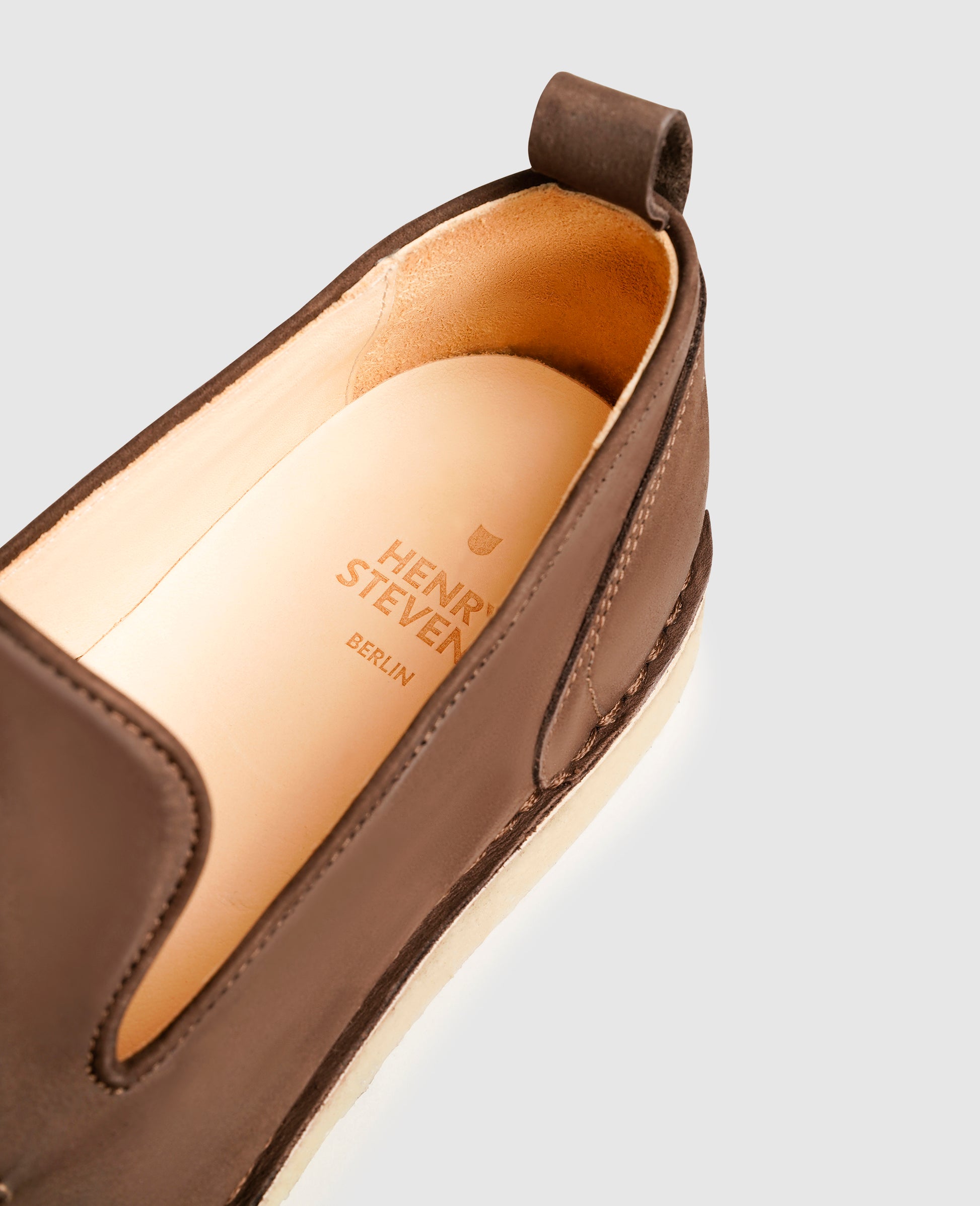 These flexible stitchdown loafers for men from Henry Stevens are a light and airy choice for casual summer outfits. The distinctive combination of supple nubuck leather with a comfortable crepe sole made from natural rubber exudes a modern lightness. Inside the model, the fully compostable organic leather ensures pure feel-good comfort. With its vegetable-tanned and skin-friendly lining, this William model is equally suitable for modern barefoot looks.