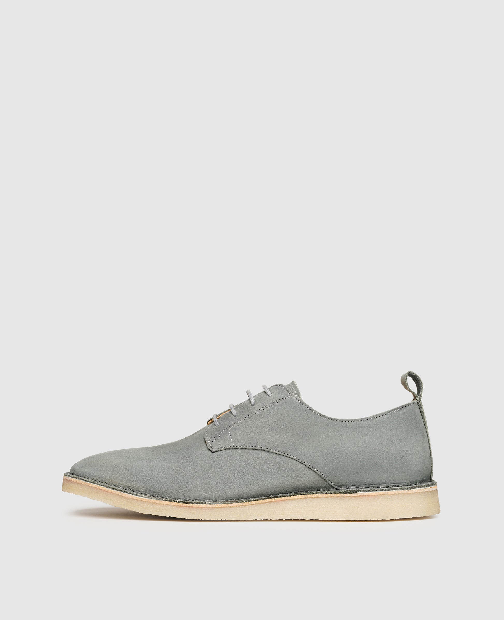 A lightweight crepe sole made of sustainable natural rubber lends this flexible stitchdown plain Derby for men from Henry Stevens a pleasant casual ease. The exquisite nubuck leather on the upper of the shoe is both dynamic and supple. Inside the shoe, a vegetable-tanned and skin-friendly lining made of organic leather and a practical interchangeable footbed with memory foam provide for an all-around comfortable walking experience, even with barefoot summer styles.