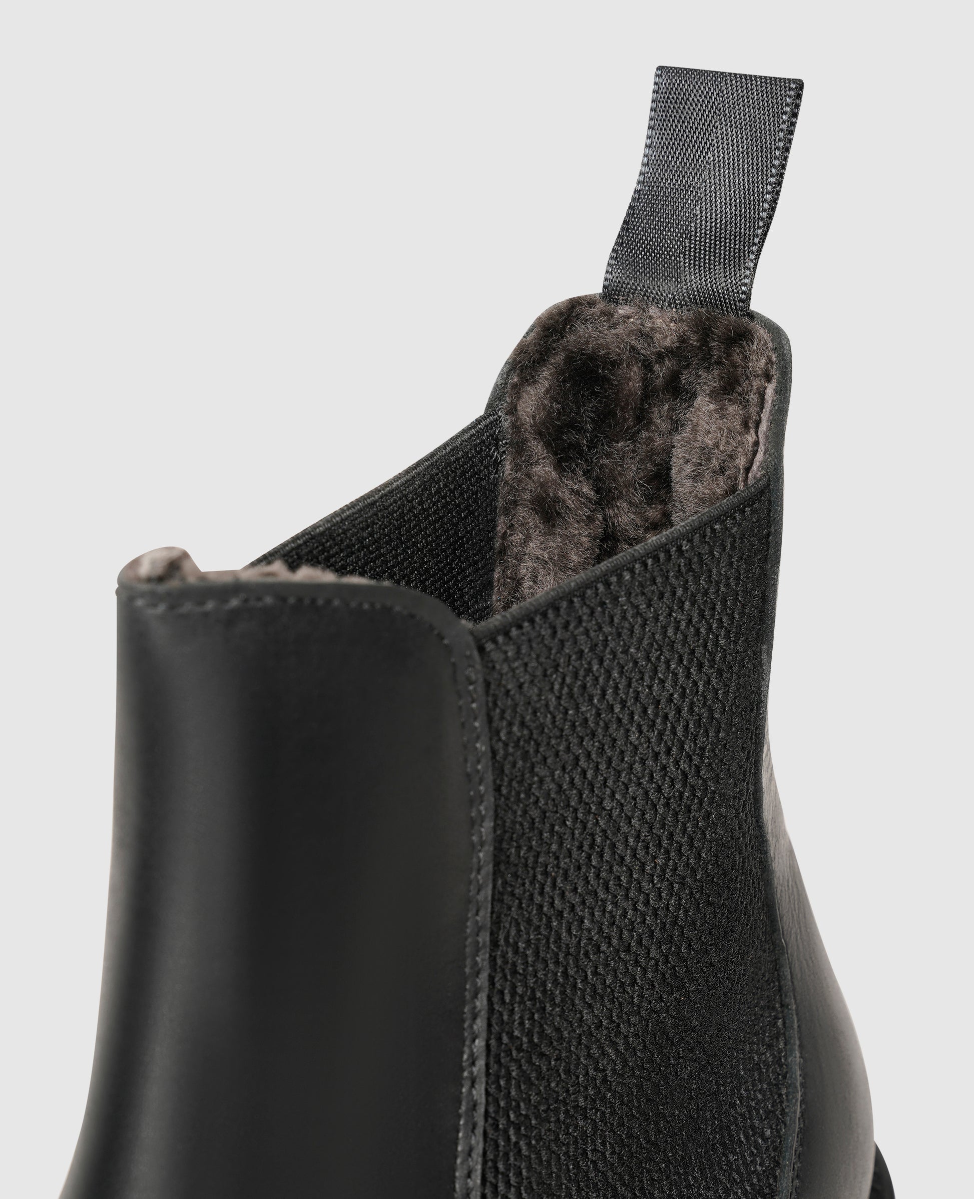 This winter version of the extremely popular Chelsea boot from Henry Stevens guarantees its wearer the utmost in stability as well as warm and cozy comfort. While these men's boots have a warming lambskin lining on the inside, the robust rubber sole features a sturdy, non-slip tread. The greased leather of the upper, while extremely hard-wearing, is also easy to care for. The structured, wide elastic inserts are a particularly eye-catching feature of these classic boots.