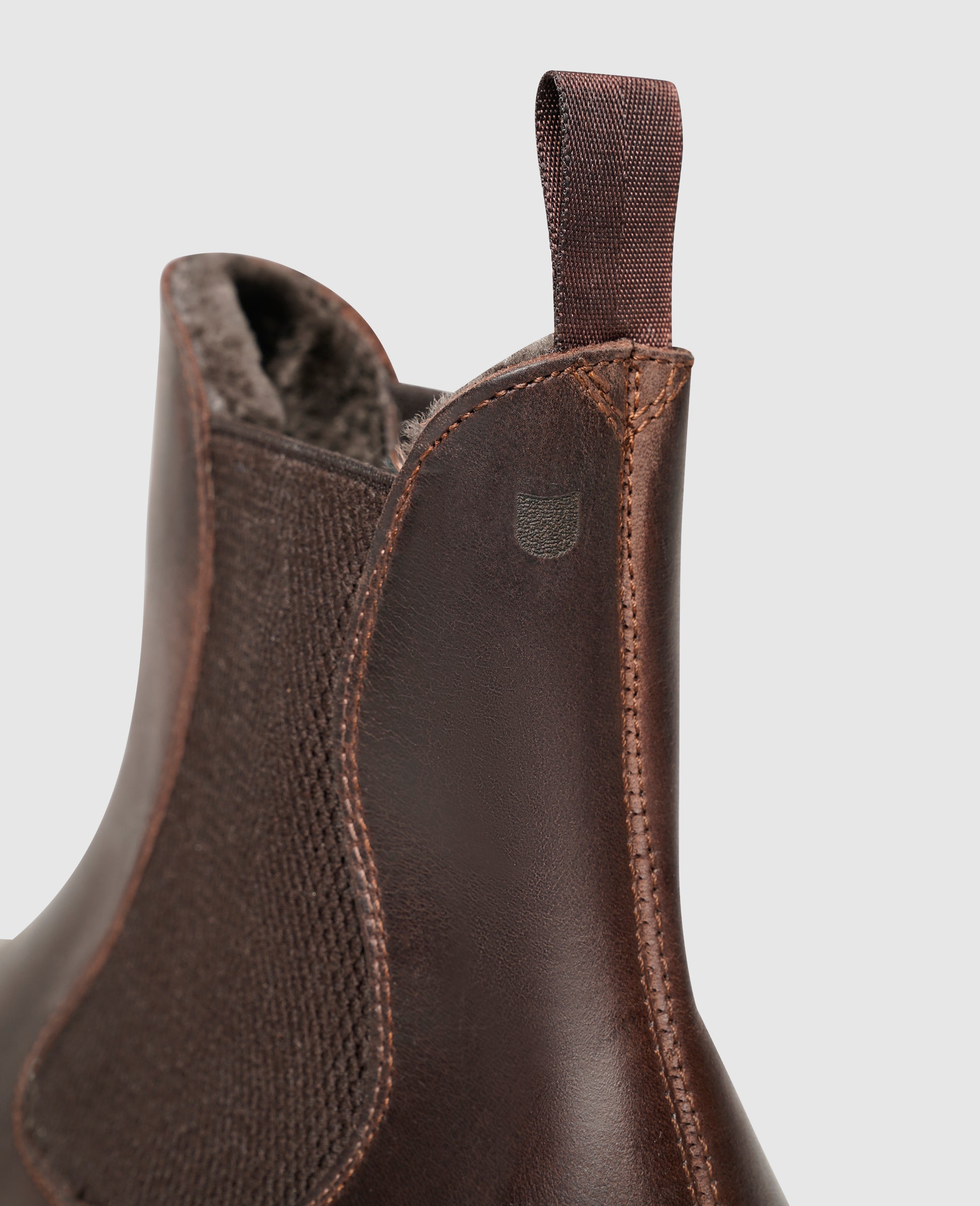This winter version of the extremely popular Chelsea boot from Henry Stevens guarantees its wearer the utmost in stability as well as warm and cozy comfort. While these men's boots have a warming lambskin lining on the inside, the robust rubber sole features a sturdy, non-slip tread. The greased leather of the upper, while extremely hard-wearing, is also easy to care for. The structured, wide elastic inserts are a particularly eye-catching feature of these classic boots.