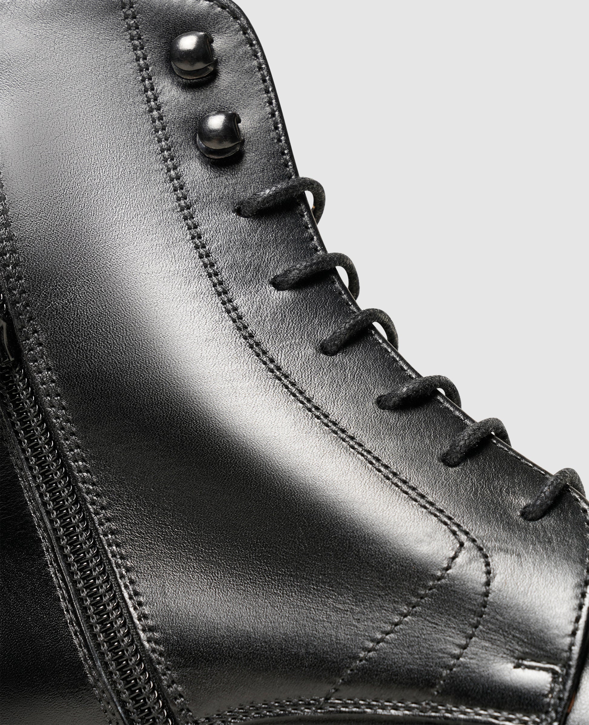 These Goodyear-welted men's boots from Henry Stevens are an elegant and sturdy choice. The finest calfskin leather has been used for the shoe's upper, which impresses with its supple texture. The classic design and innovative combined leather-rubber sole predestine this men's boot with its practical side zip fastening for modern business combinations and sophisticated leisurewear looks throughout the cool and wet season.