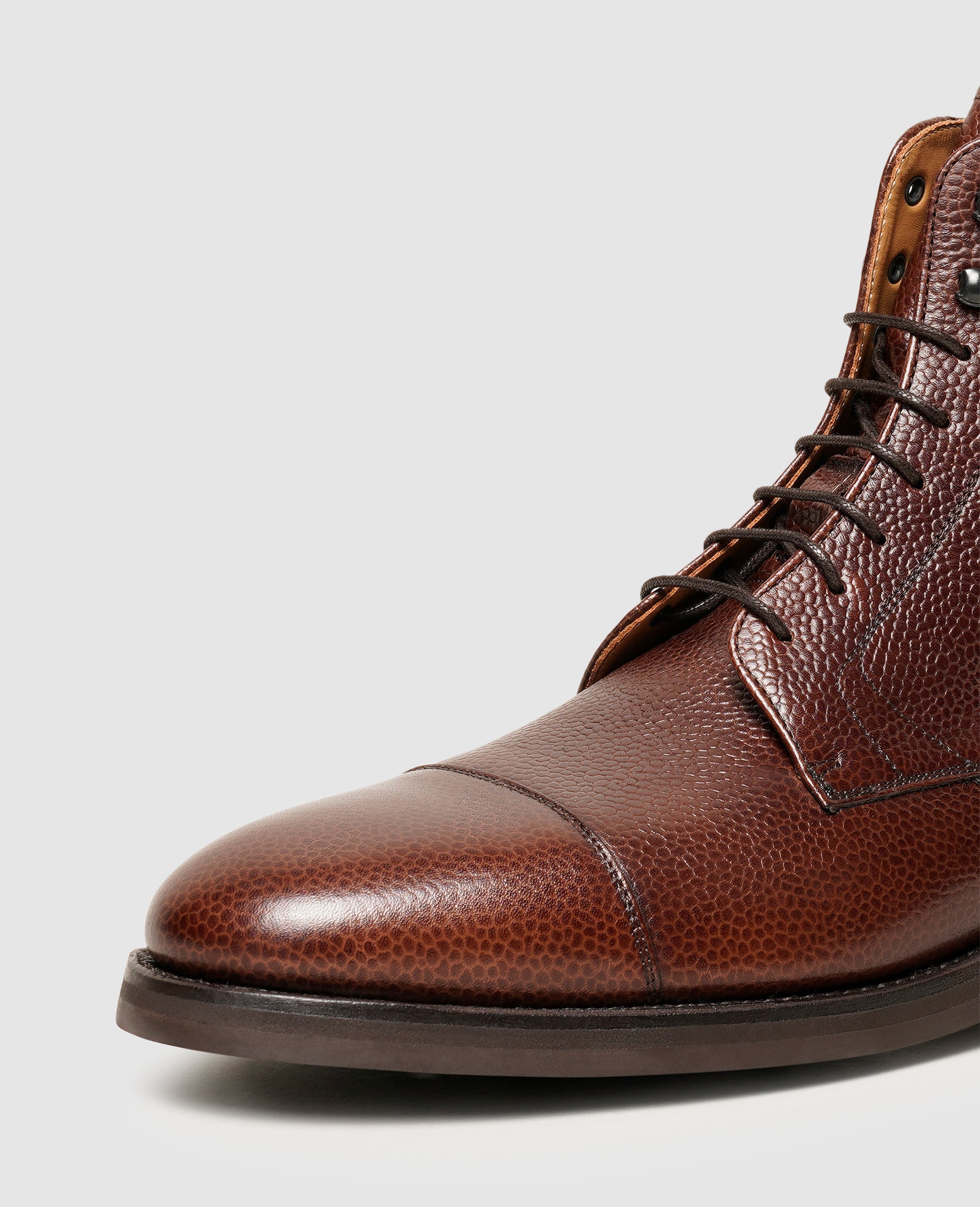 Distinctive, comfortable, and durable, these Goodyear-welted, handcrafted boots for men are offered by Henry Stevens in a popular Derby design. The eye-catching texture of the embossed leather upper adds a welcome dynamism, which is further accented by a straight toe-cap seam. For less formal occasions, this modern men's boot with its sturdy Dainite rubber outsole and side zip fastening exudes a confident nonchalance.