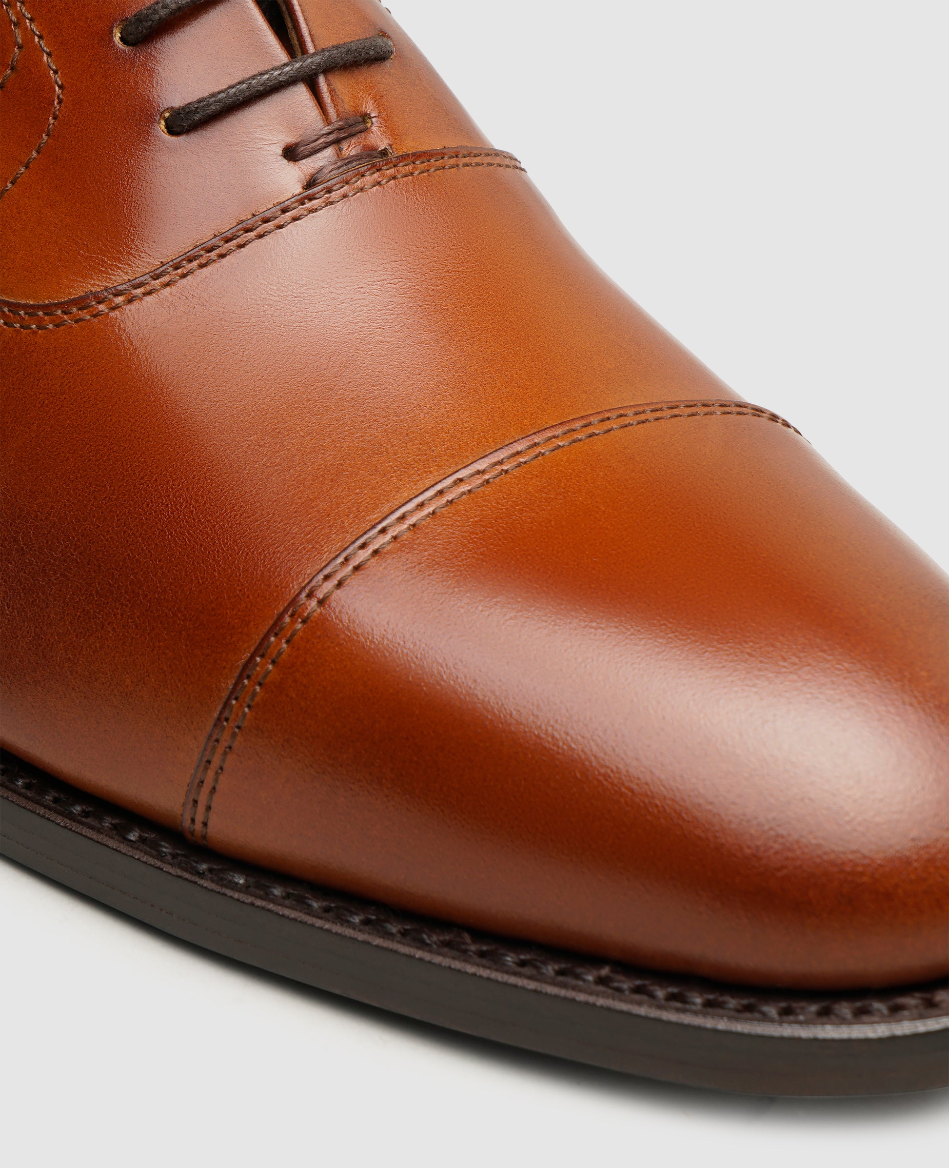 Expect nothing less than timeless elegance, exceptional comfort, and skilled craftsmanship from this classic Goodyear-welted, full-leather shoe from the Henry Stevens collection. This cap-toe Oxford men's shoe made from the finest French calfskin boasts understated lines subtly softened by the toe cap seam that gives the shoe its name. The ideal lace-up shoe for all men, perfect for both business and leisure as well as those special occasions