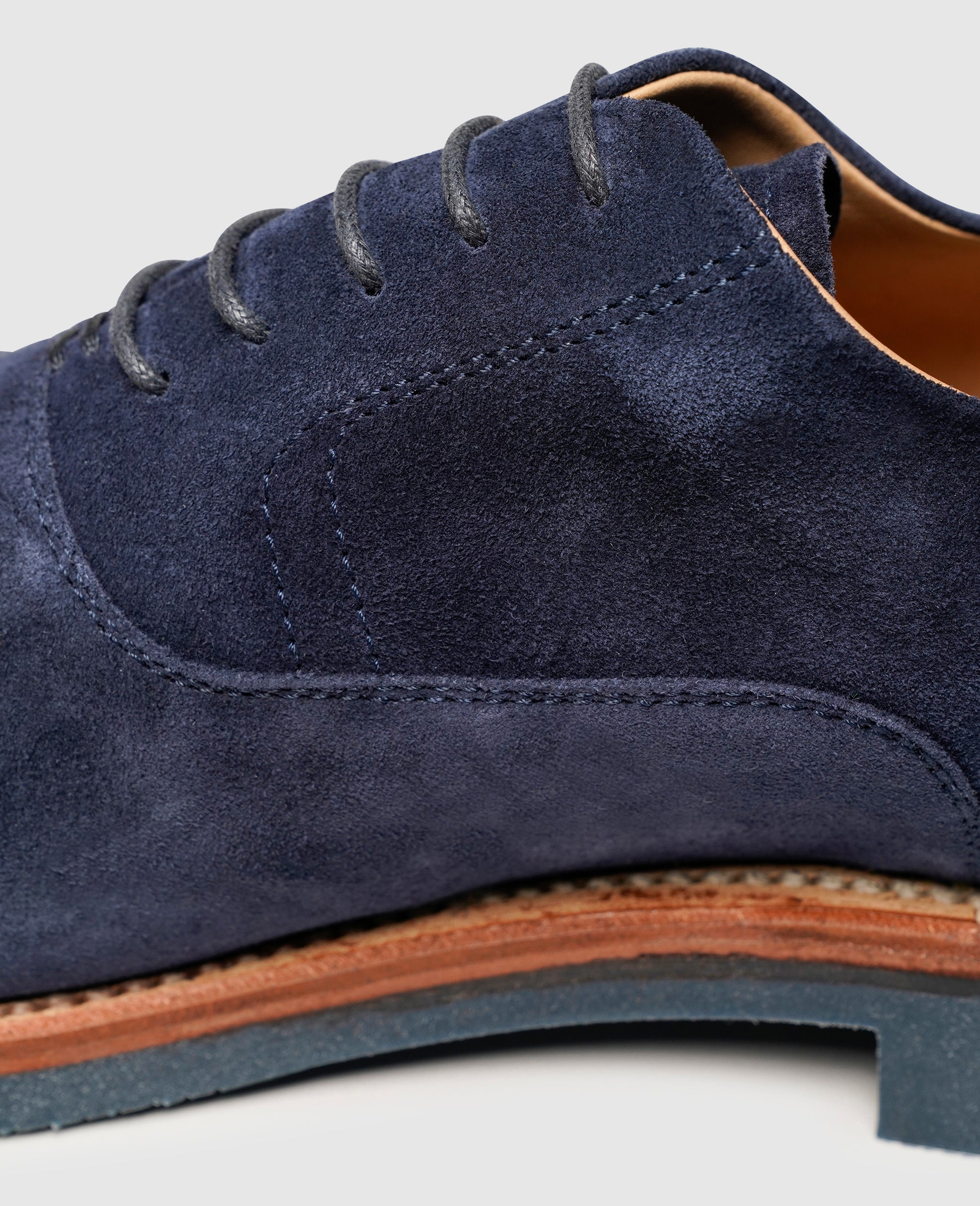 This flexible, Goodyear-welted cap-toe Oxford for men from Henry Stevens exudes a modern flair. Thanks to its blended construction, the synthetic sole is especially flexible in the forefoot area, right from the very first step. The soft velour leather supports the dynamic character of the model and makes these comfortable lace-up shoes for men ideal for both modern business attire and leisure wear.