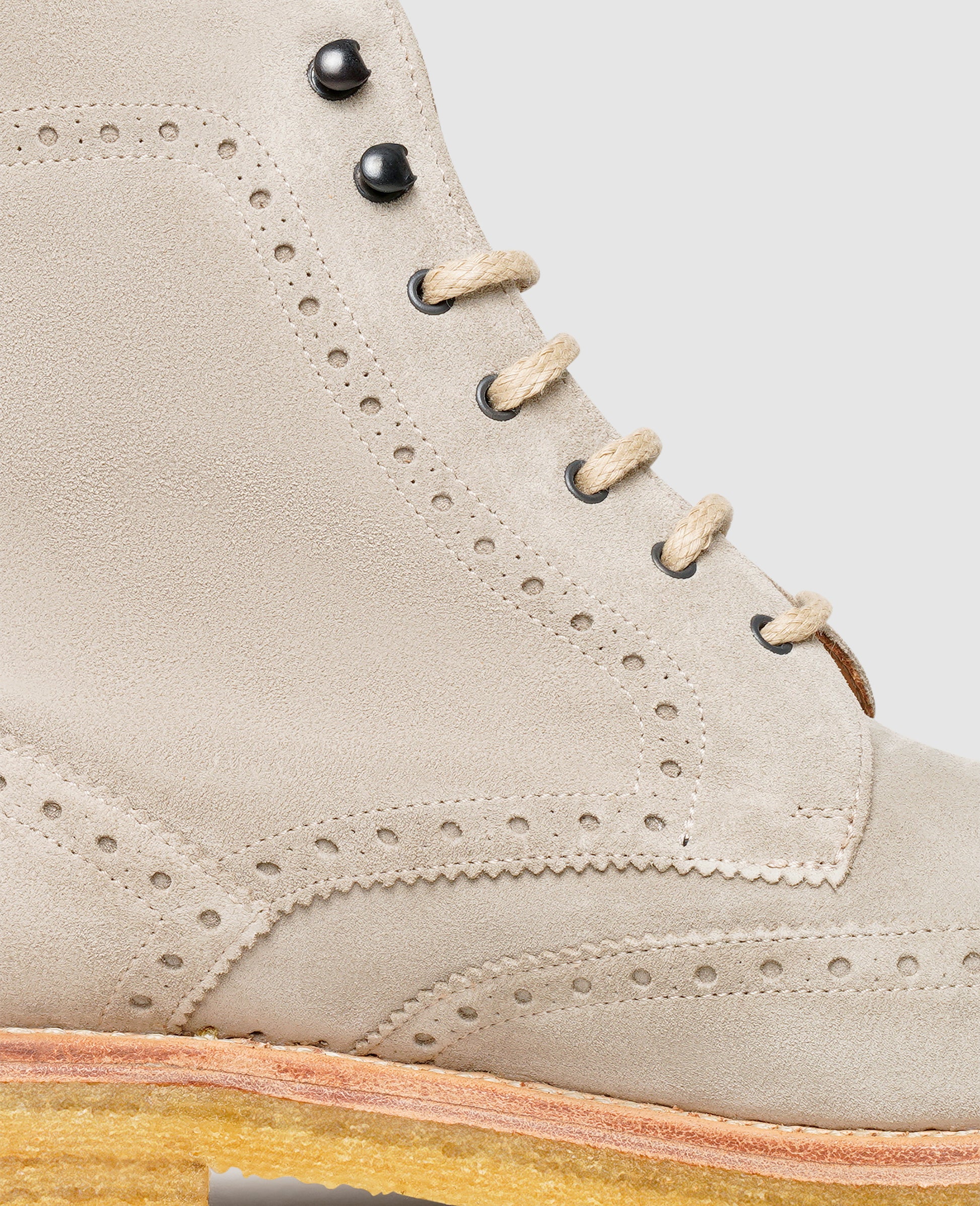 The elegant combination of rich detailing and velvety suede leather transforms these handcrafted men's boots from Henry Stevens into a favorite for smart casual occasions. The beautifully contoured perforations adorn the shaft edges as well as the attached toe and heel caps, with the intricate design on the front providing the icing on the cake. The comfort offered by the Goodyear-welted construction of these suede leather boots is complemented by a modern crepe outsole.