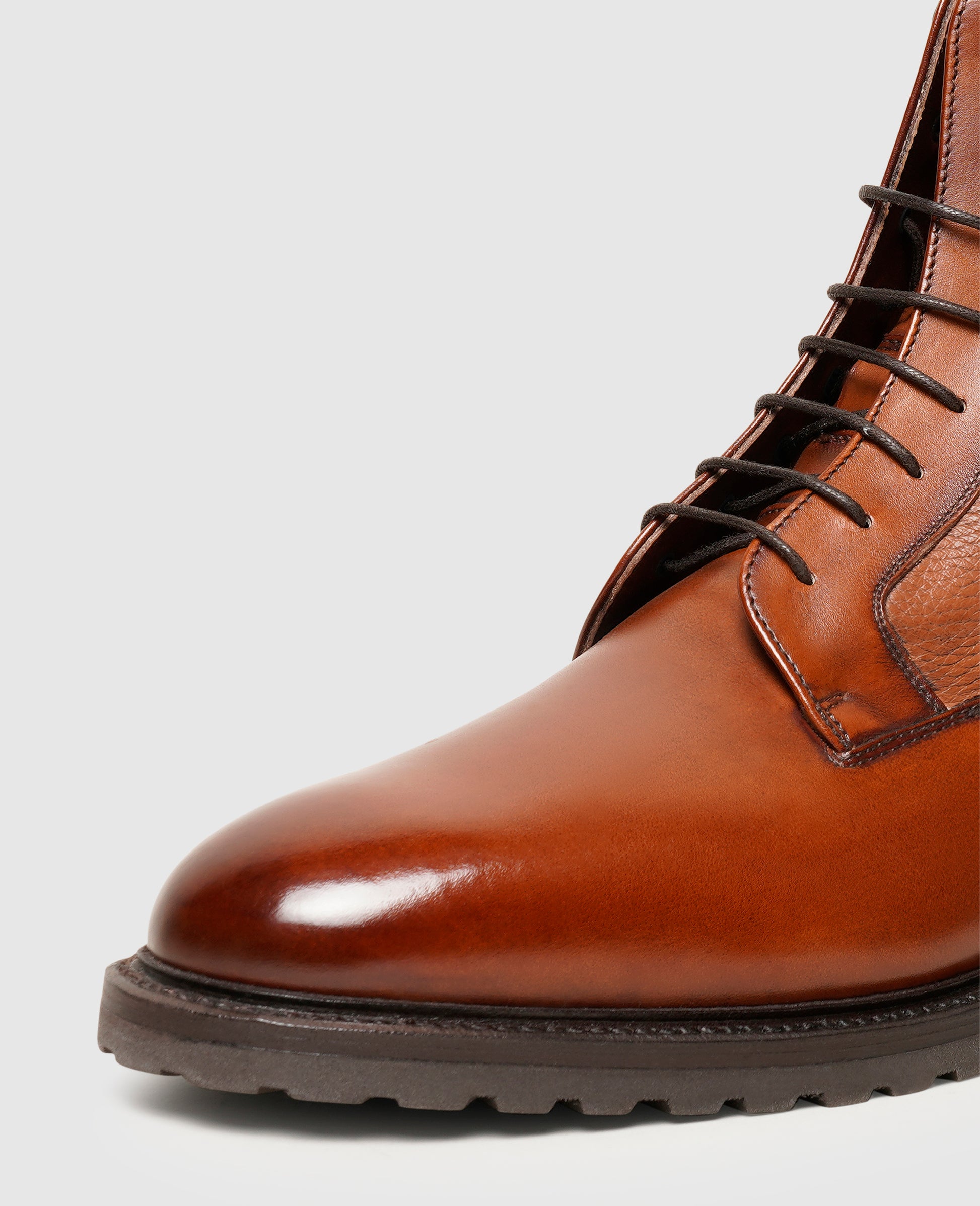 These handcrafted, Goodyear-welted boots for men from Henry Stevens are the epitome of modern extravagance. The striking interplay of fine calfskin and distinctive deerskin lends this model a dynamic look. Its smooth leather sections also impress with subtle color nuances, which are the result of an intricate hand-finishing process. While the inside of these boots is lined with a warm lambskin, the rubber lug sole provides stability on the outside.